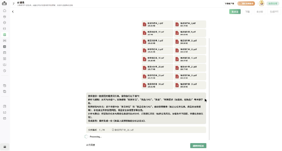 只需10秒,这些碎片信息就能自动生成完整结构化的表格,而且支持批量、多来源的去一键分析和整理的数据!