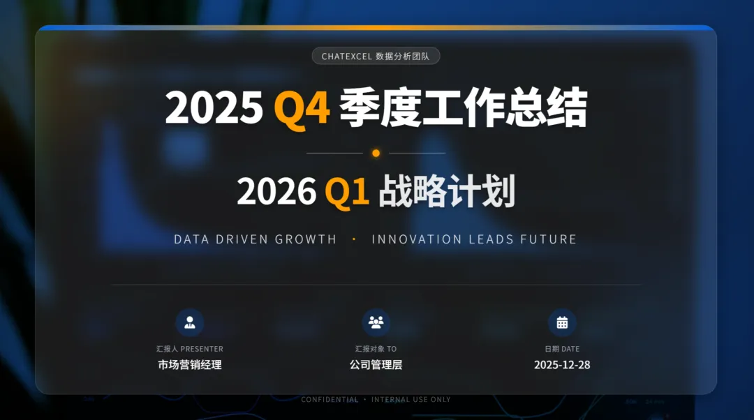 OK!是不是AI又刷新了你对办公方式的认知,Chatexcel 让我们实现了万物皆可做表,数据为你所用。可视化PPT那也是张口就来!