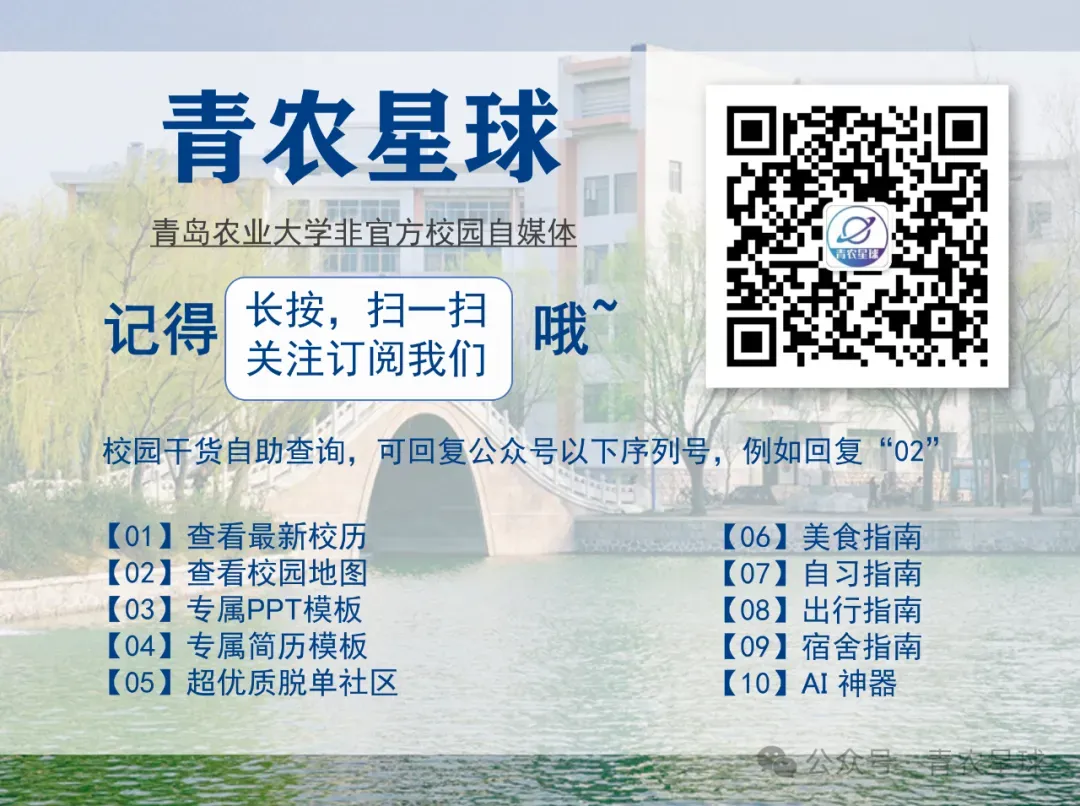 获取方式:扫码关注【青农星球】后台回复: 青岛农业大学