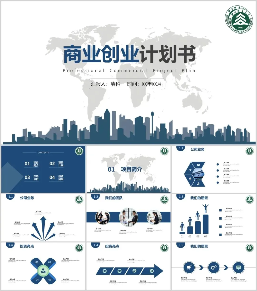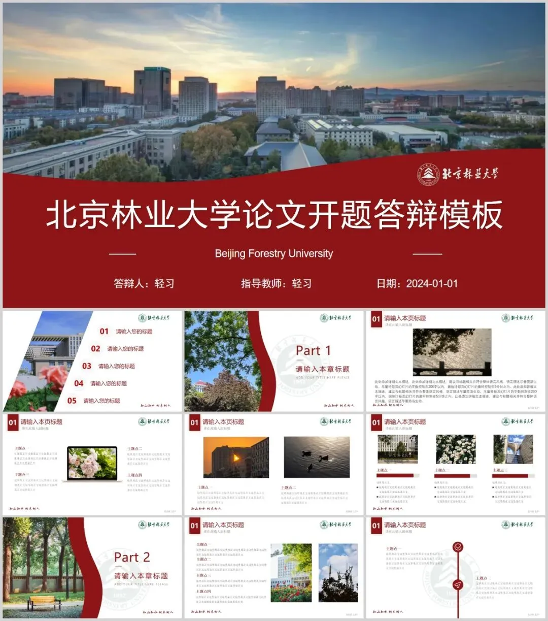 北京林业大学专属PPT模板来了,喜欢的同学不要错过啦!