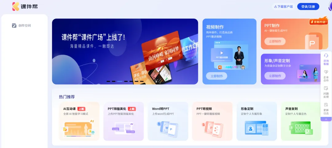 第一步:打开课件帮,输入主题或上传文档(Word/PDF均可)
