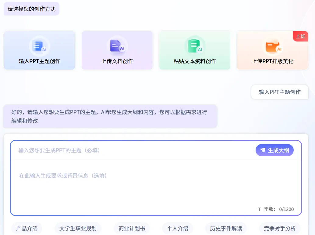 输入主题,PPT自动生成