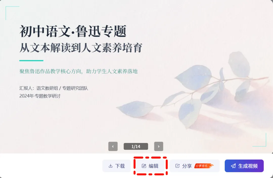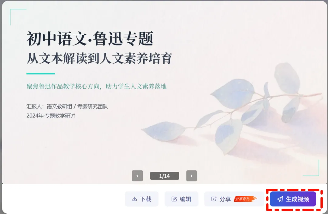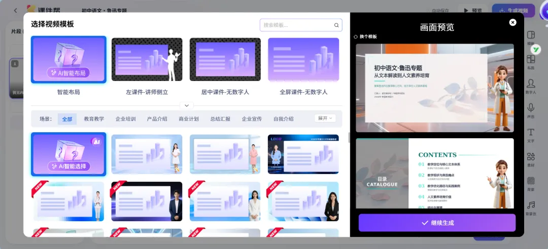 第五步(可选):点击"转成视频",选择数字人讲师风格,一键生成微课视频
