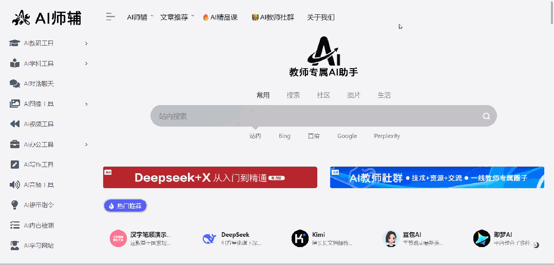 我专门做了一个老师专属AI助手——AI师辅网,里面汇集了超多往期发布的AI教学网页游戏,老师可以直接使用,还包括了教研、学科和办公场景需要的工具,一站式解决您的需求!