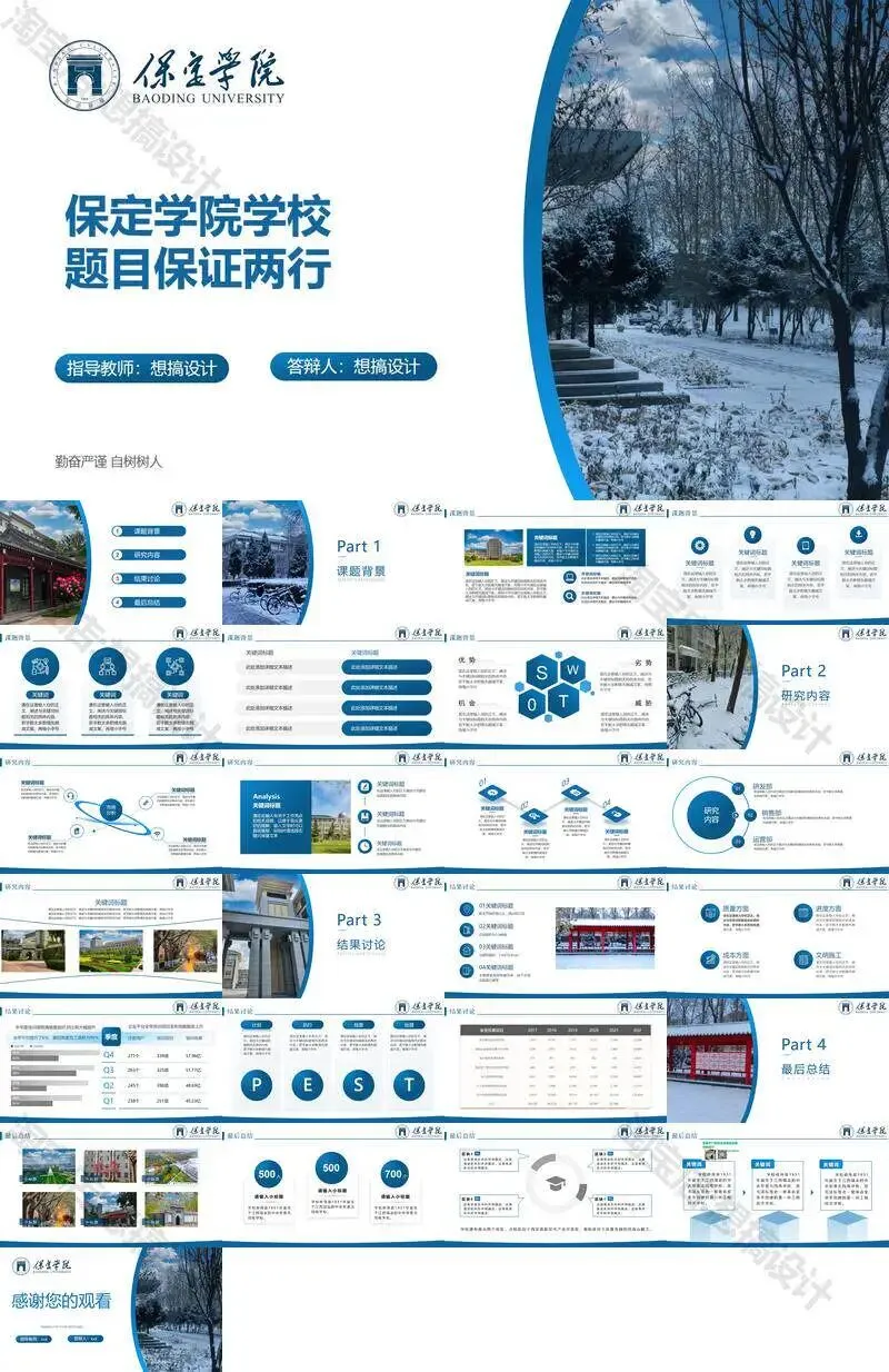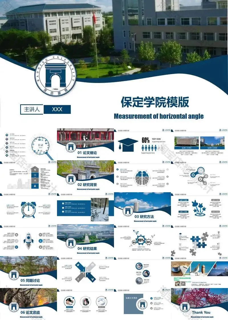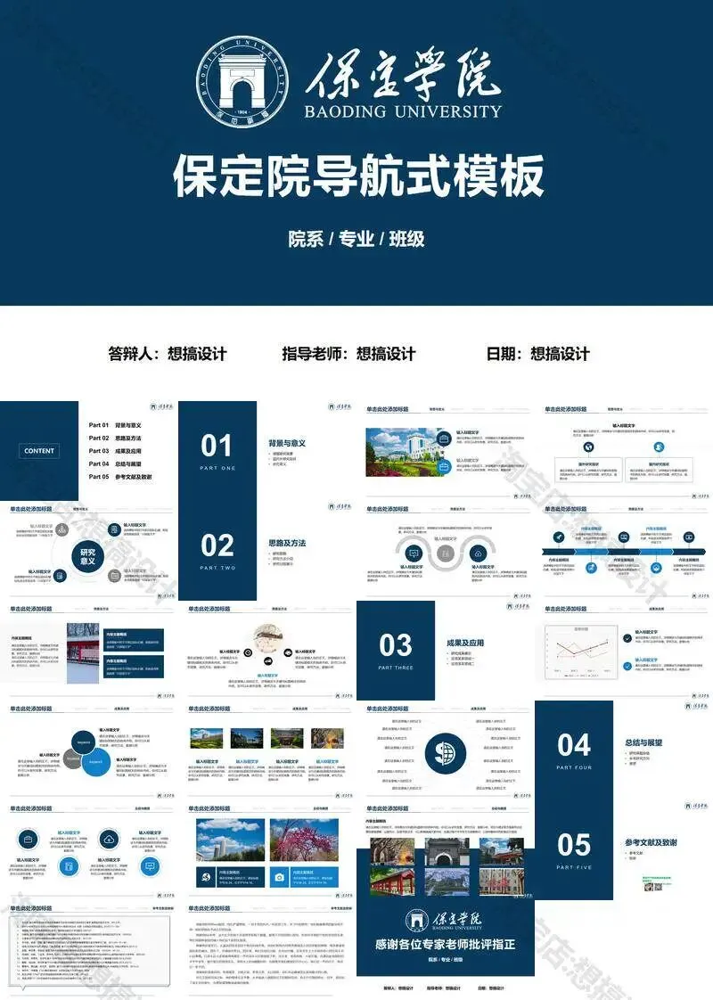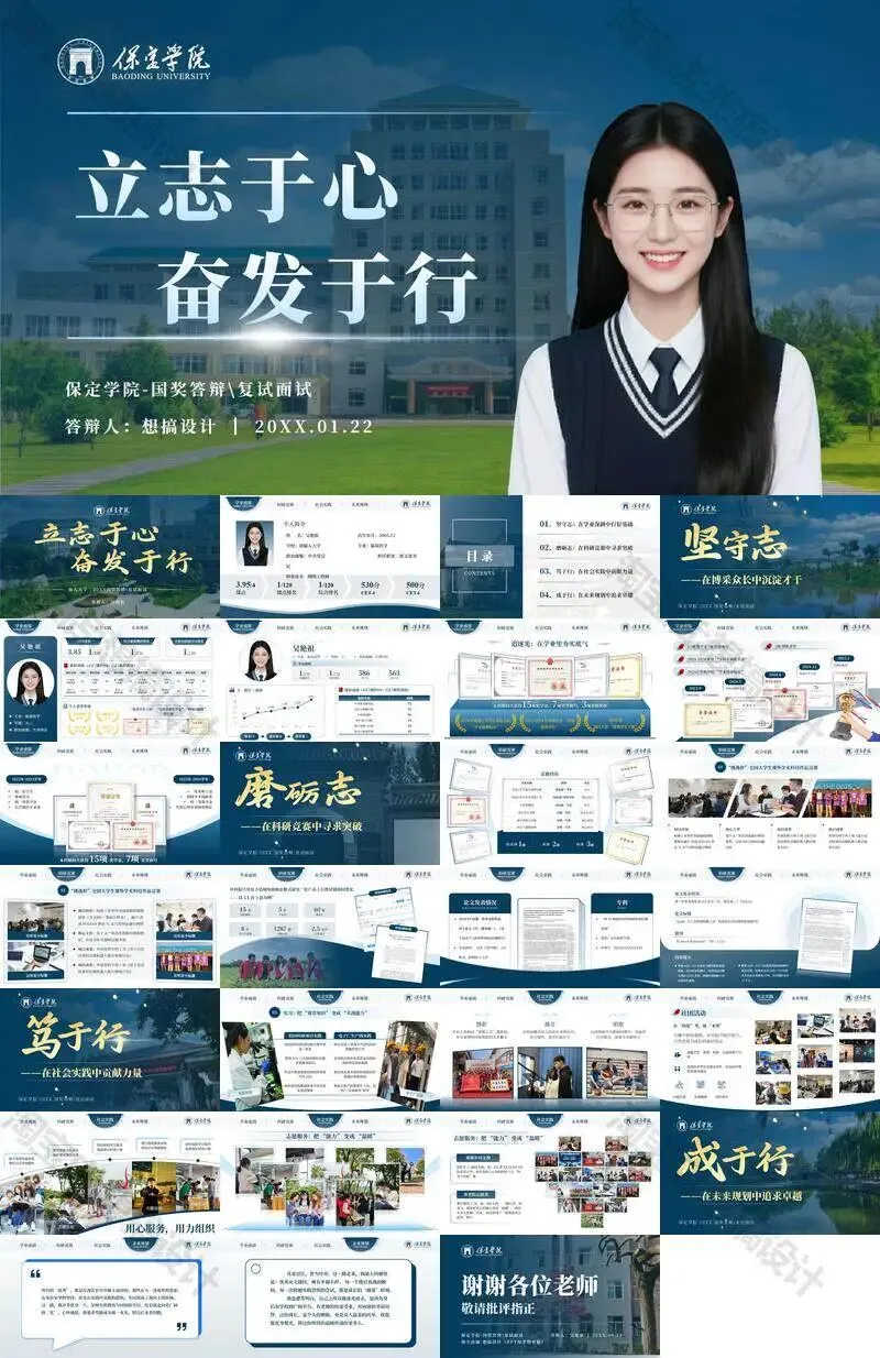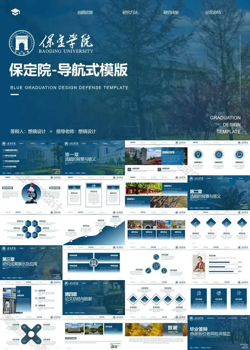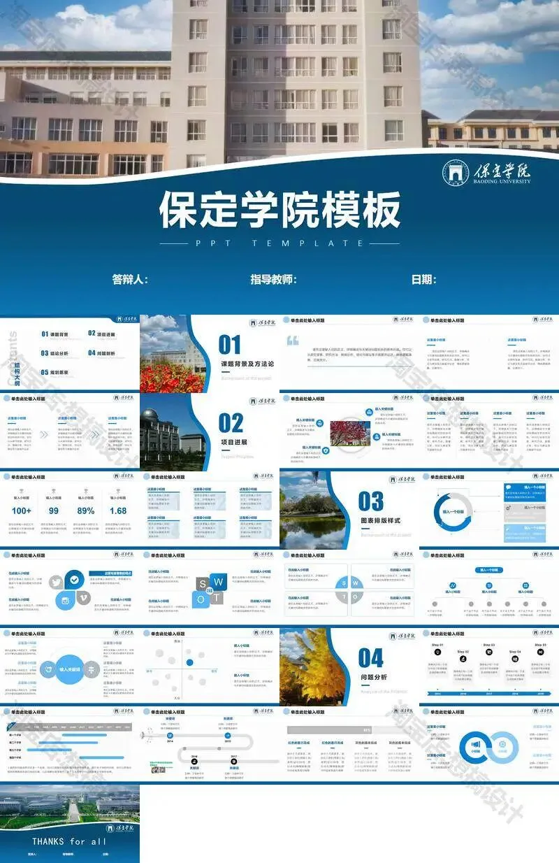 保定学院毕业答辩PPT模板汇报幻灯片课件总结大学生作品集
