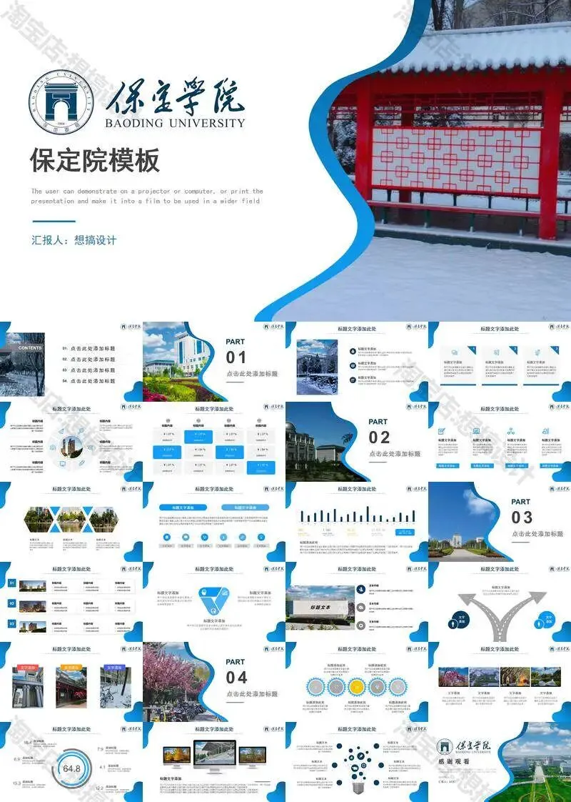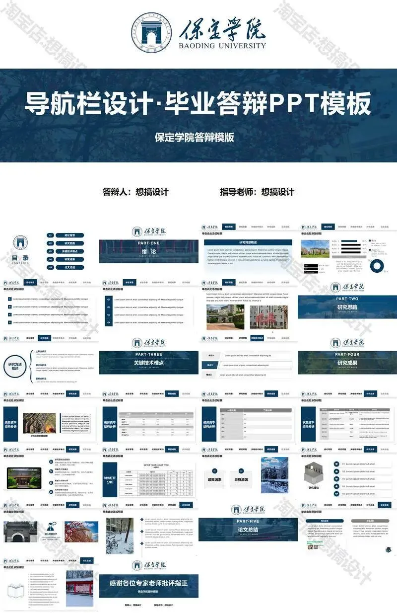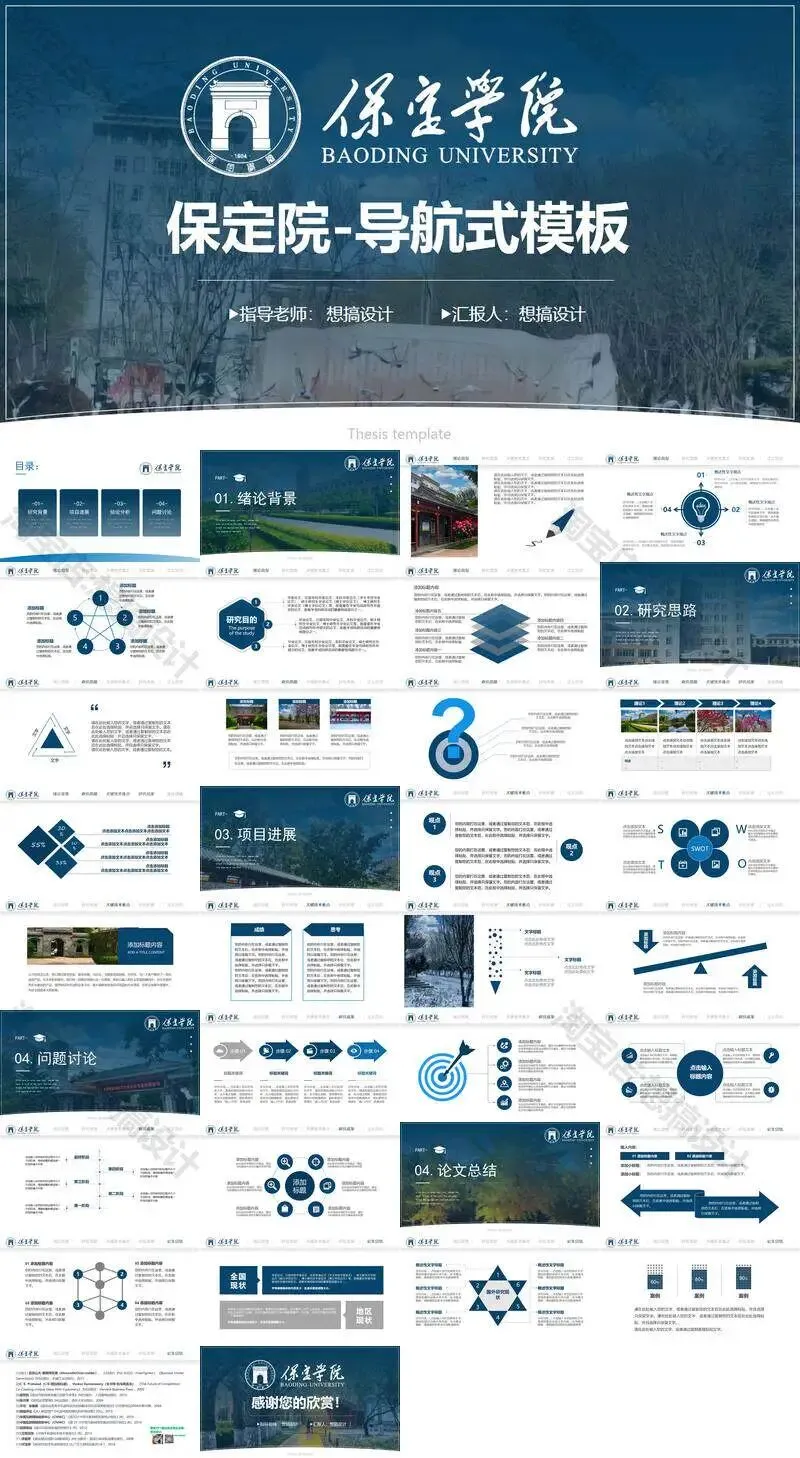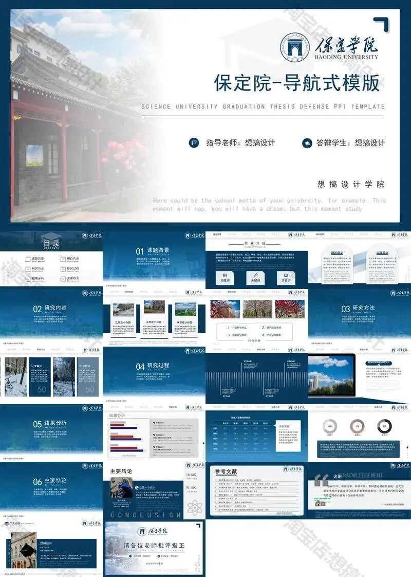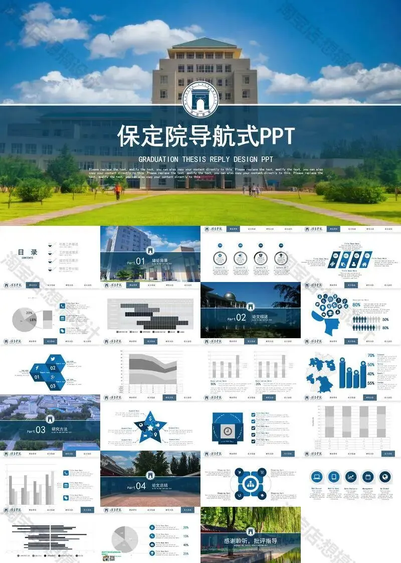 保定学院毕业答辩PPT模板汇报幻灯片课件总结大学生作品集