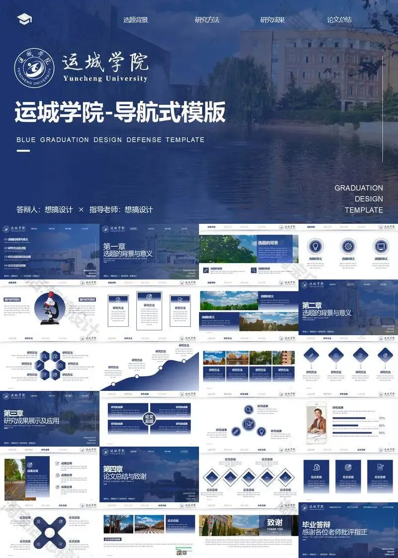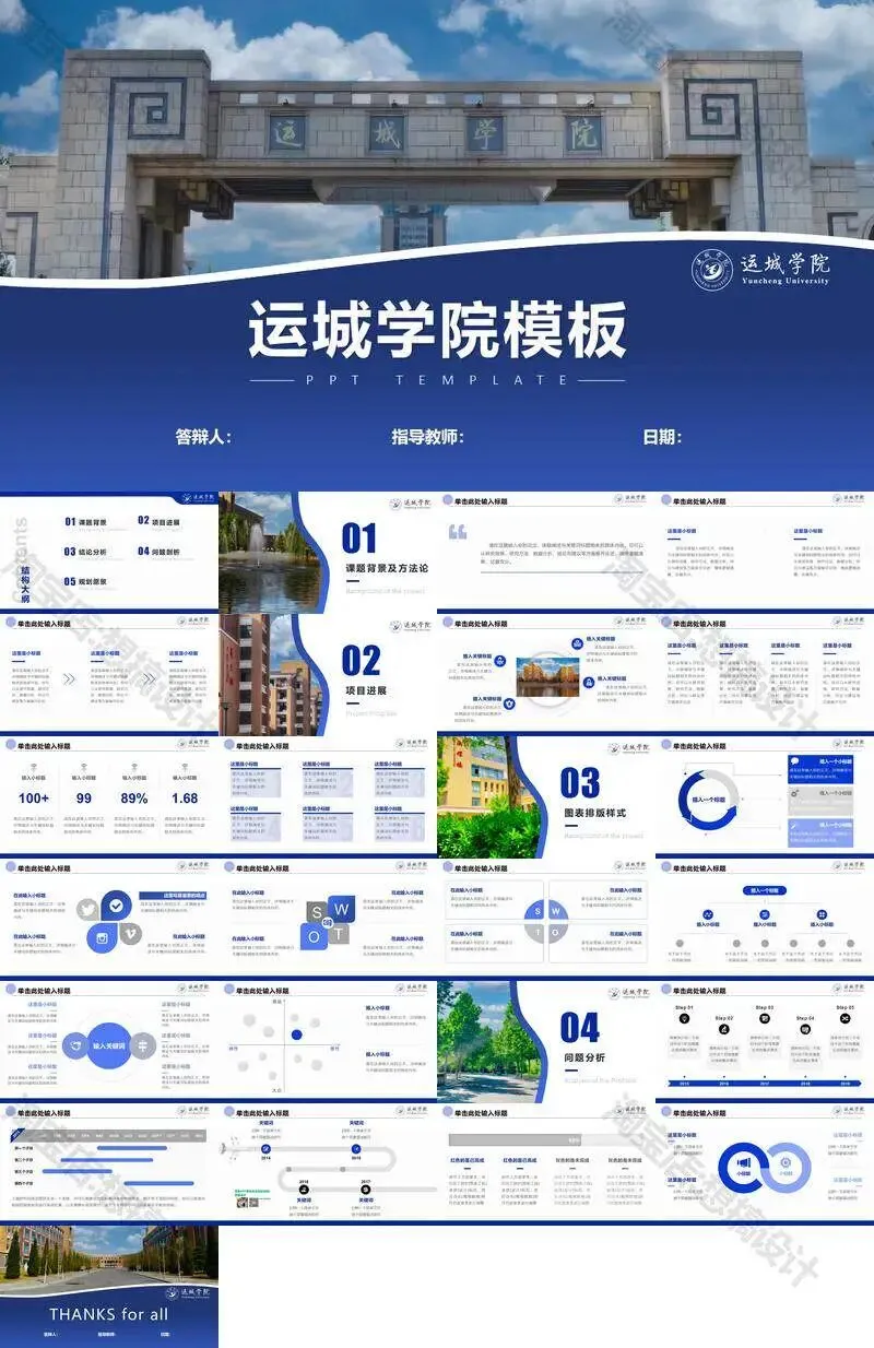 >运城学院毕业答辩PPT模板汇报幻灯片课件总结大学生作品集