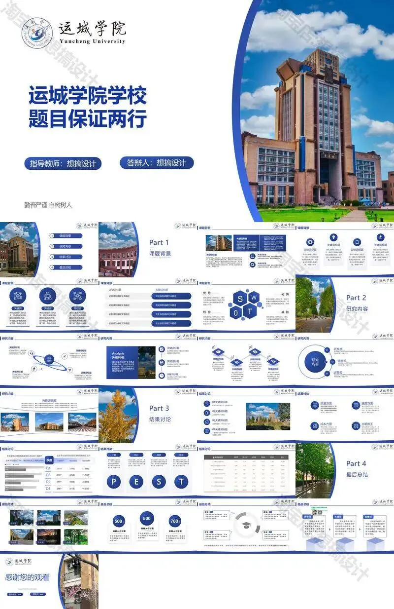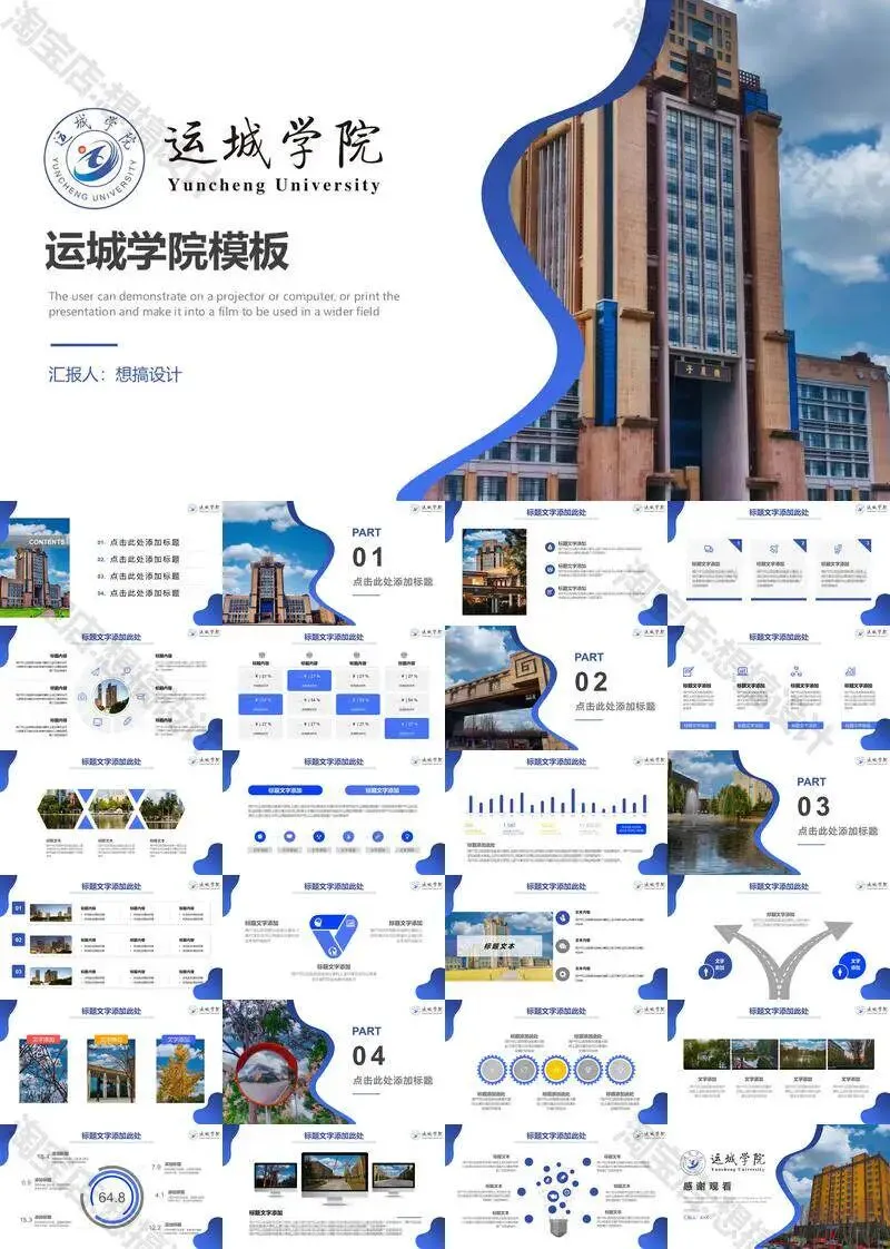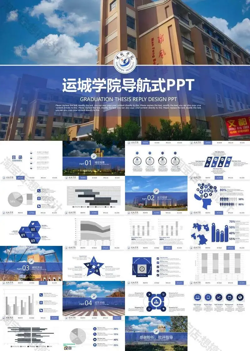 运城学院毕业答辩PPT模板汇报幻灯片课件总结大学生作品集