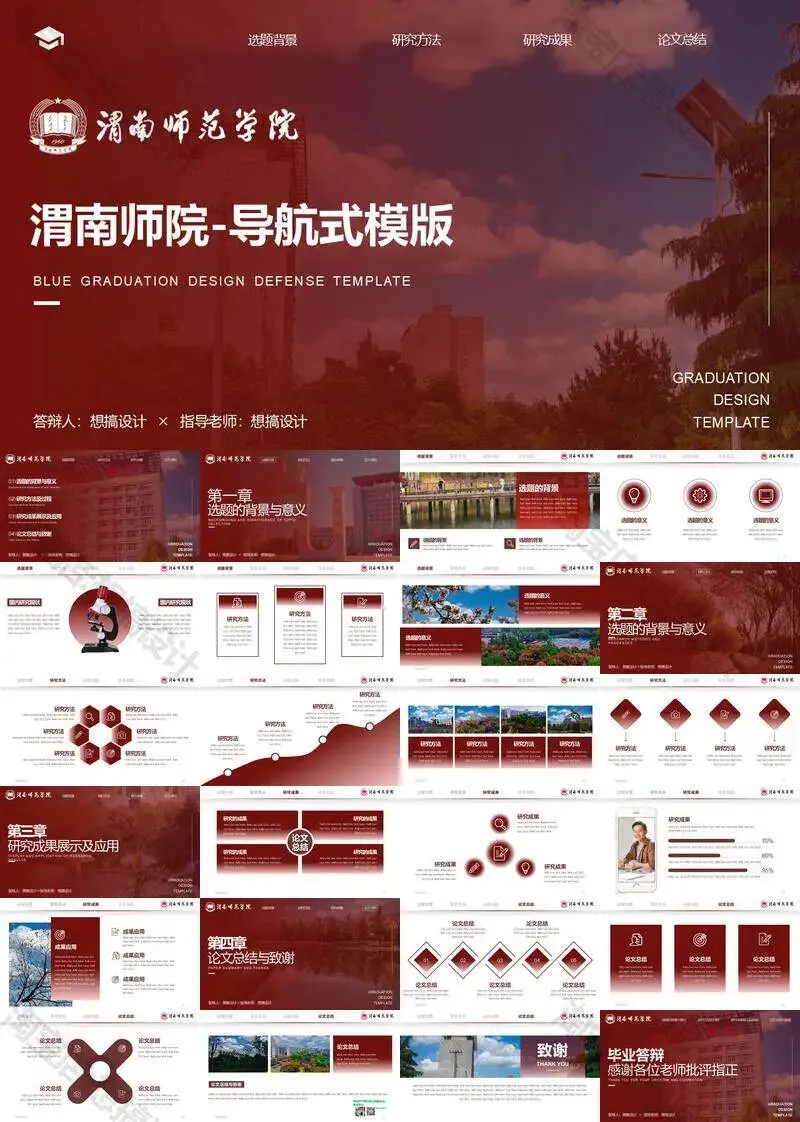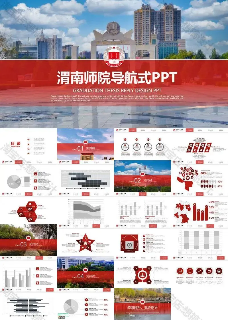 >渭南师范学院毕业答辩PPT模板汇报幻灯片课件总结大学生作品