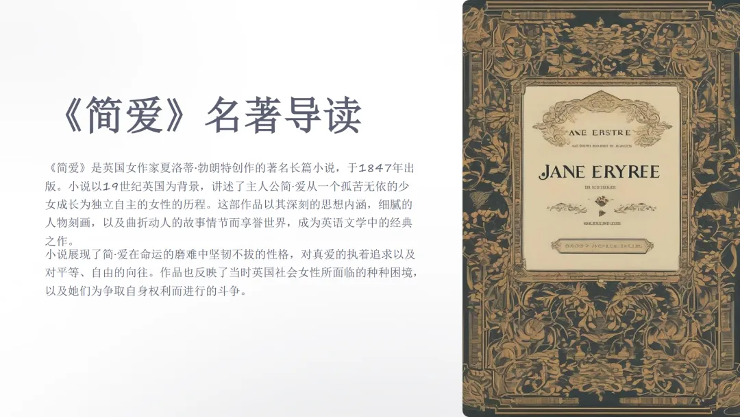 《简爱》名著读书分享导读PPT模板,中小学读书分享PPT模板教育