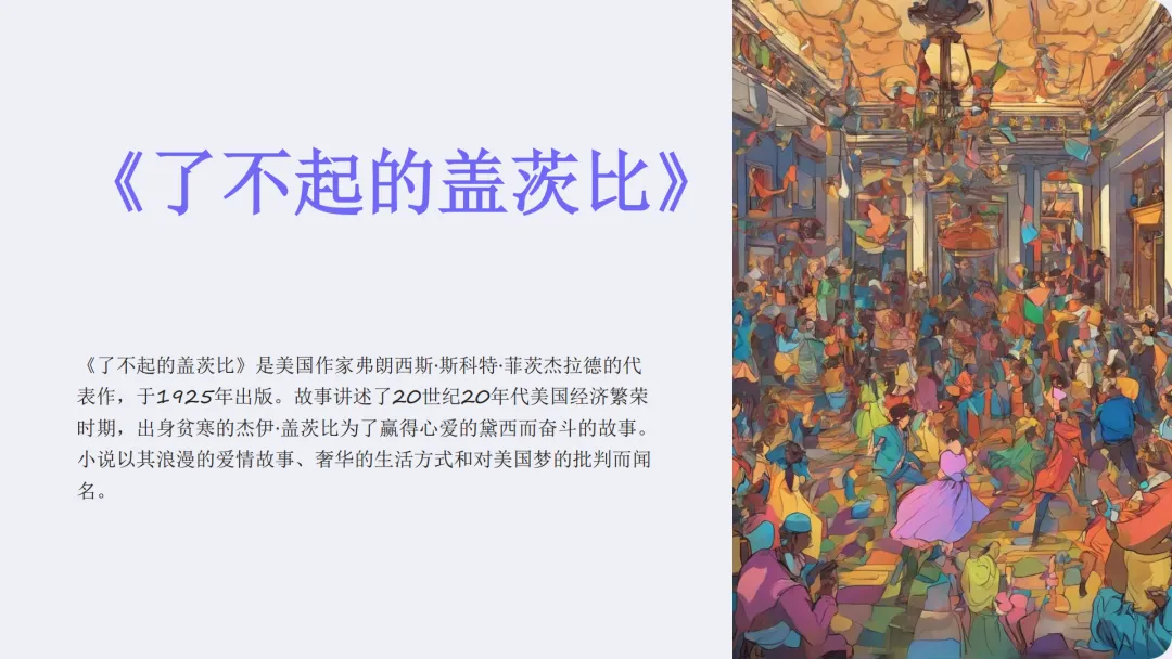 《了不起的盖茨比》名著读书分享导读PPT模版,中小学读书分享PPT模板教育