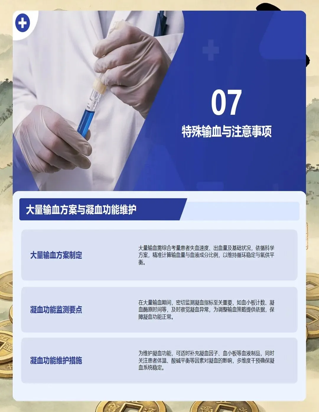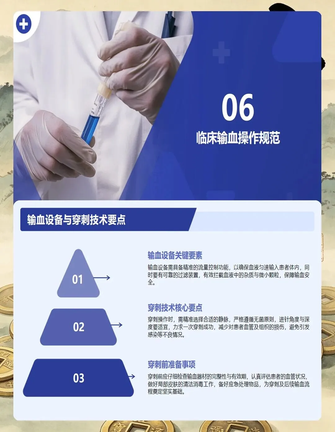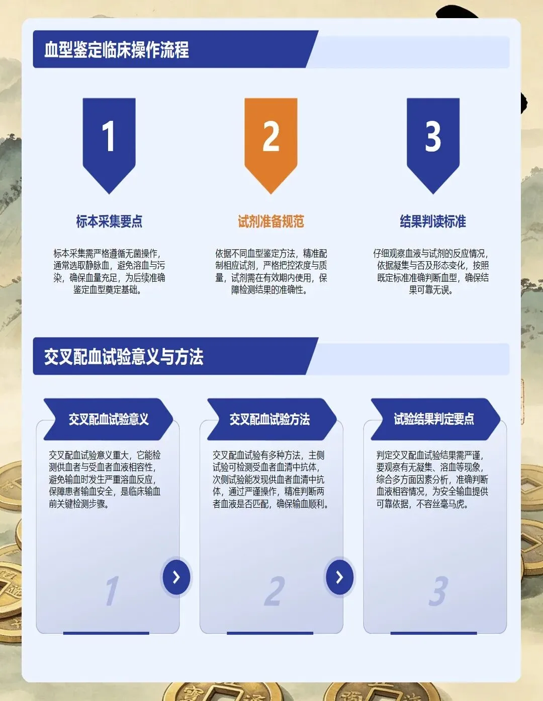血型鉴定和交叉配血是核心环节。血型鉴定要准确无误,交叉配血试验必须阴性才能输血。这两步绝对不能图省事,更不能跳步骤。