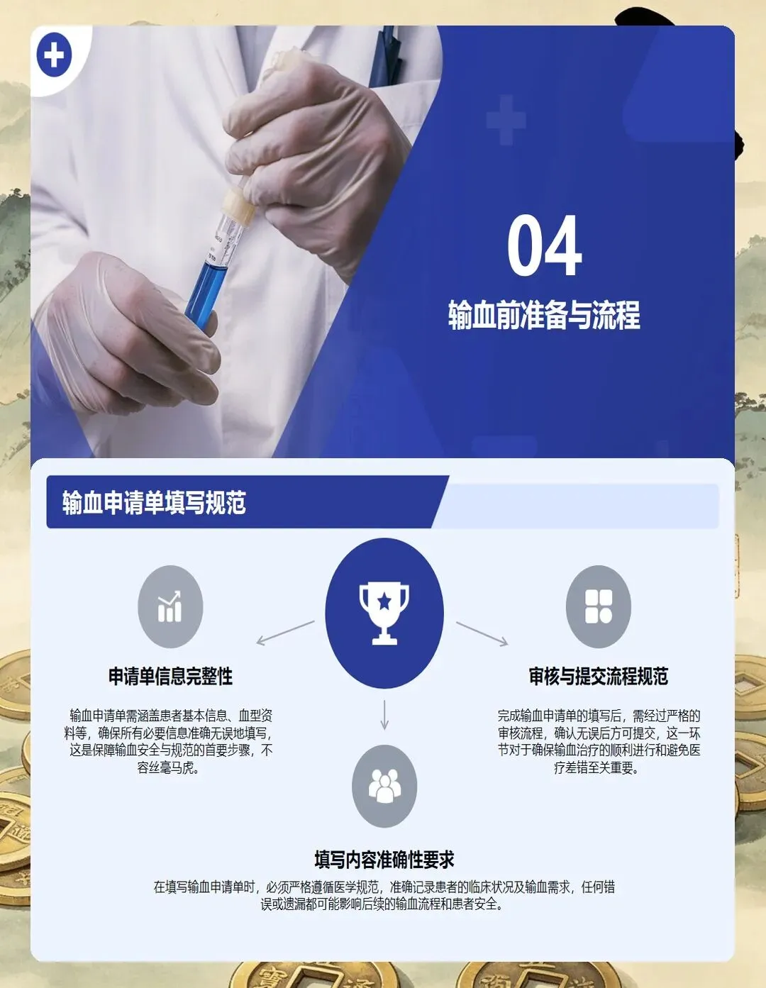 输血前的准备工作至关重要,直接关系到患者安全和输血效果。
