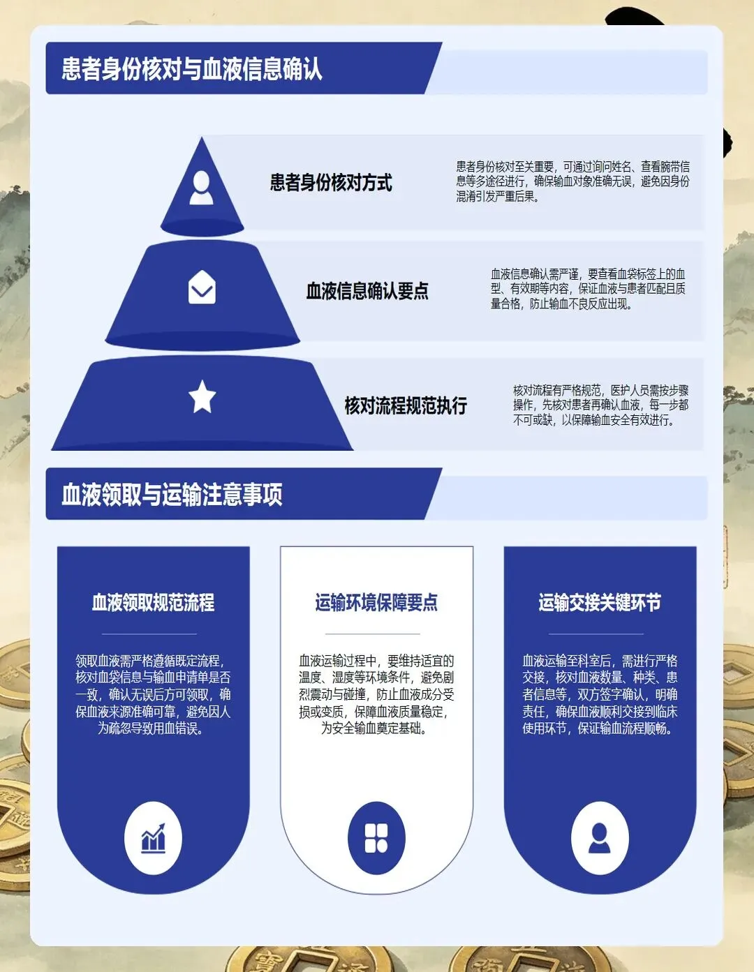 知情同意是第一道关卡。必须向患者或家属详细说明输血的目的、可能发生的不良反应,签署输血知情同意书。对于意识不清的患者,要有授权委托人签字。