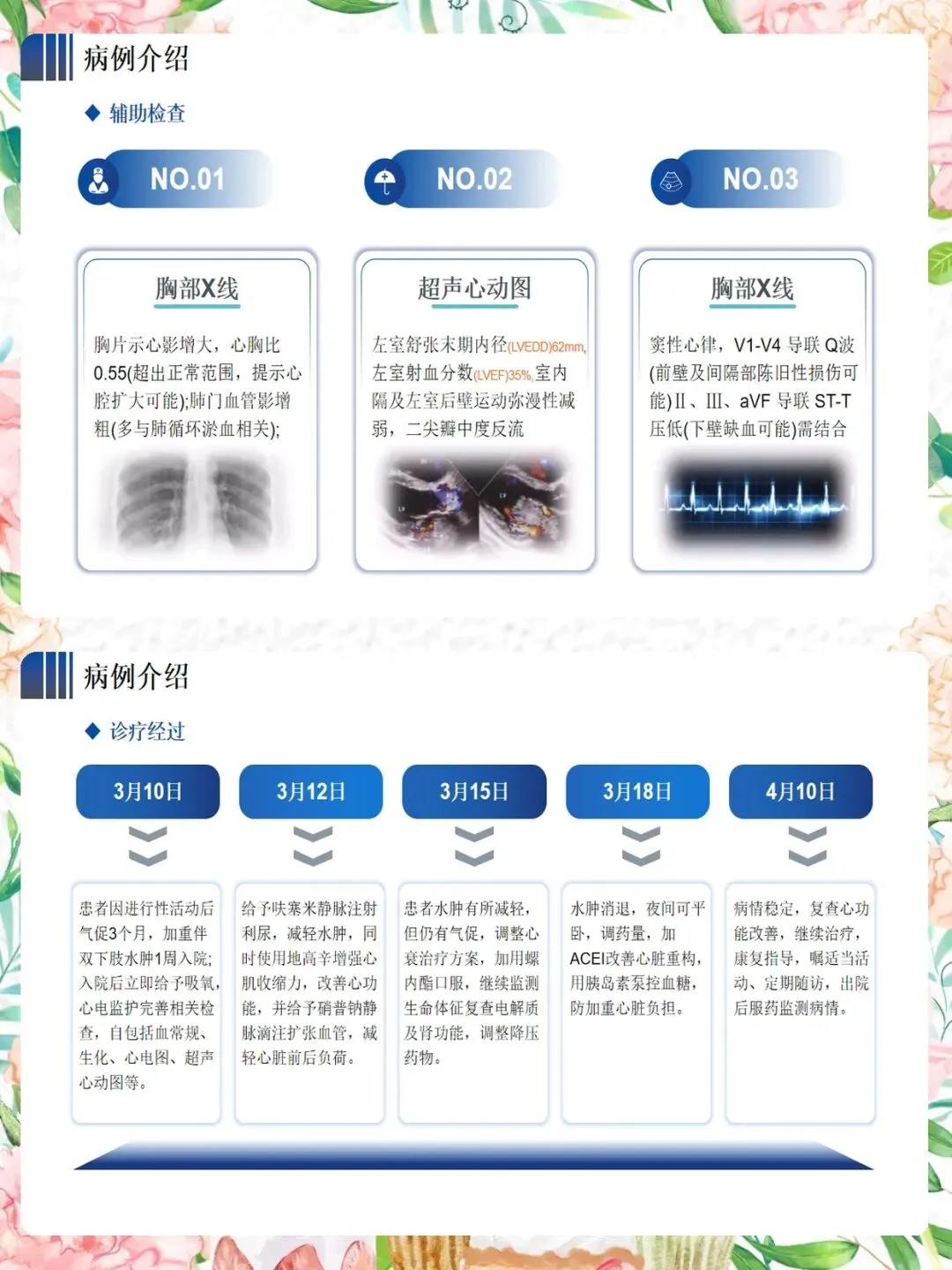 最后,通过短期、中期、长期随访,患者的LVEF从35%提升至45%以上,双下肢水肿消退,活动能力明显改善,焦虑情绪缓解,出院后也能主动参与自我管理。