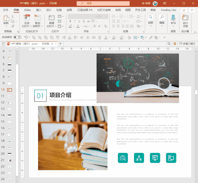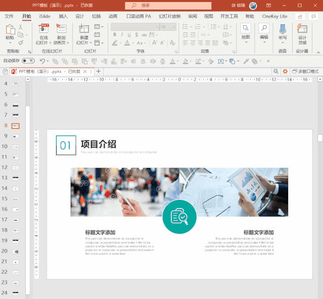 现在绝大多数PPT模板都支持一键换色,不用一页一页改,一步就能搞定: