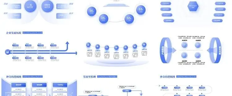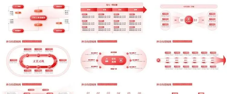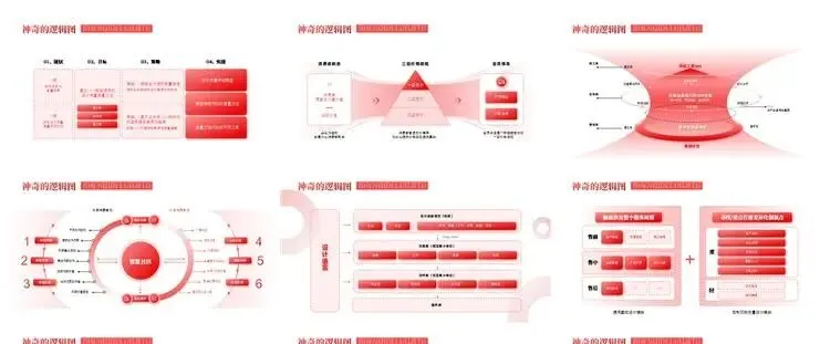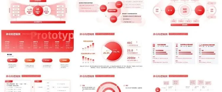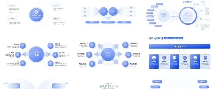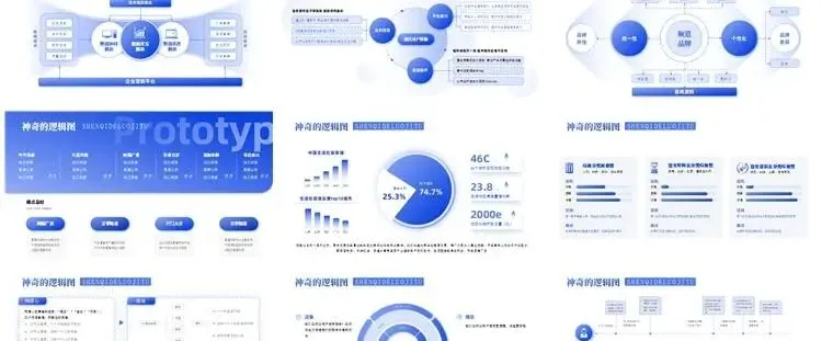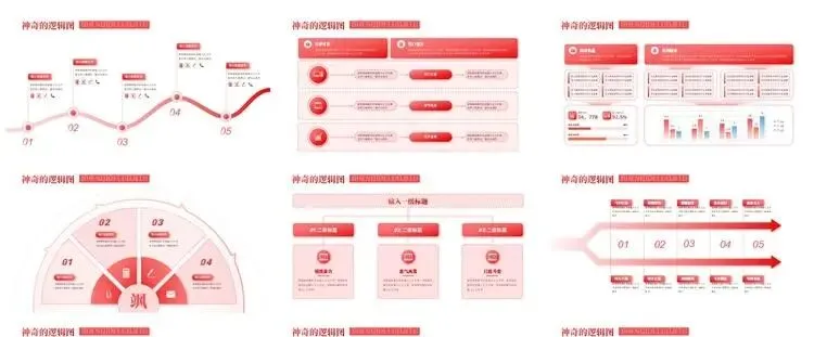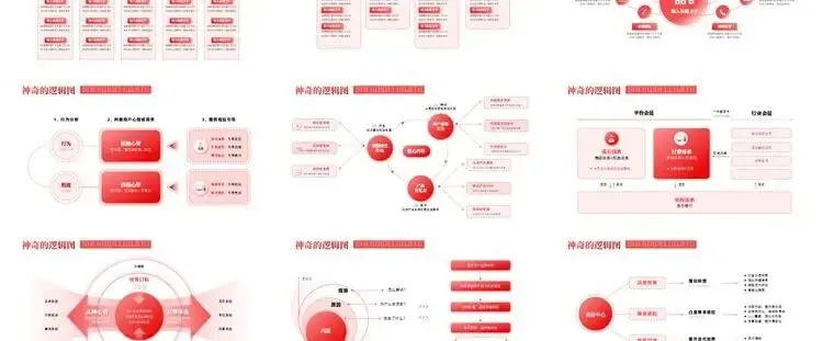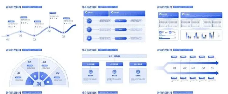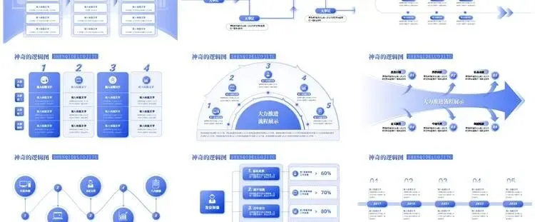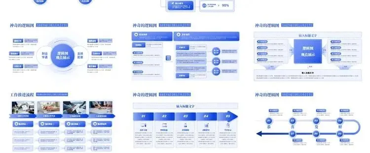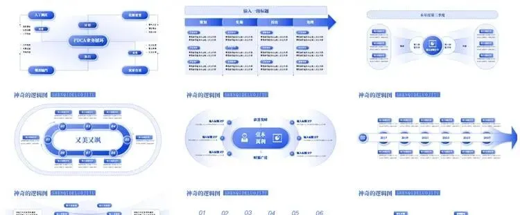 【高端PPT模板】高级工作汇报述职报告业务逻辑图架构图数据统计图表思维导图总体框架思维模型(共7种配色,每种配色500页)