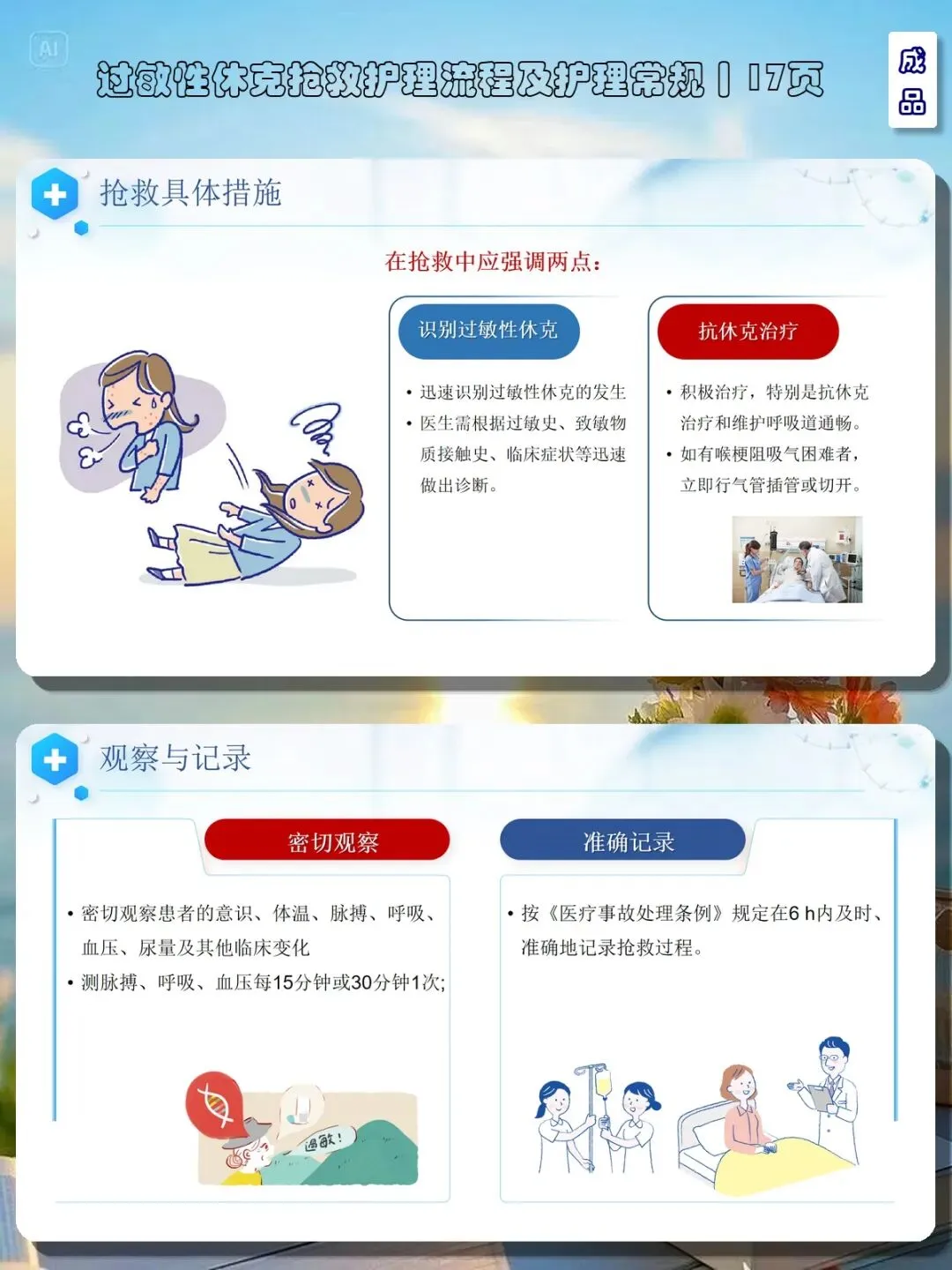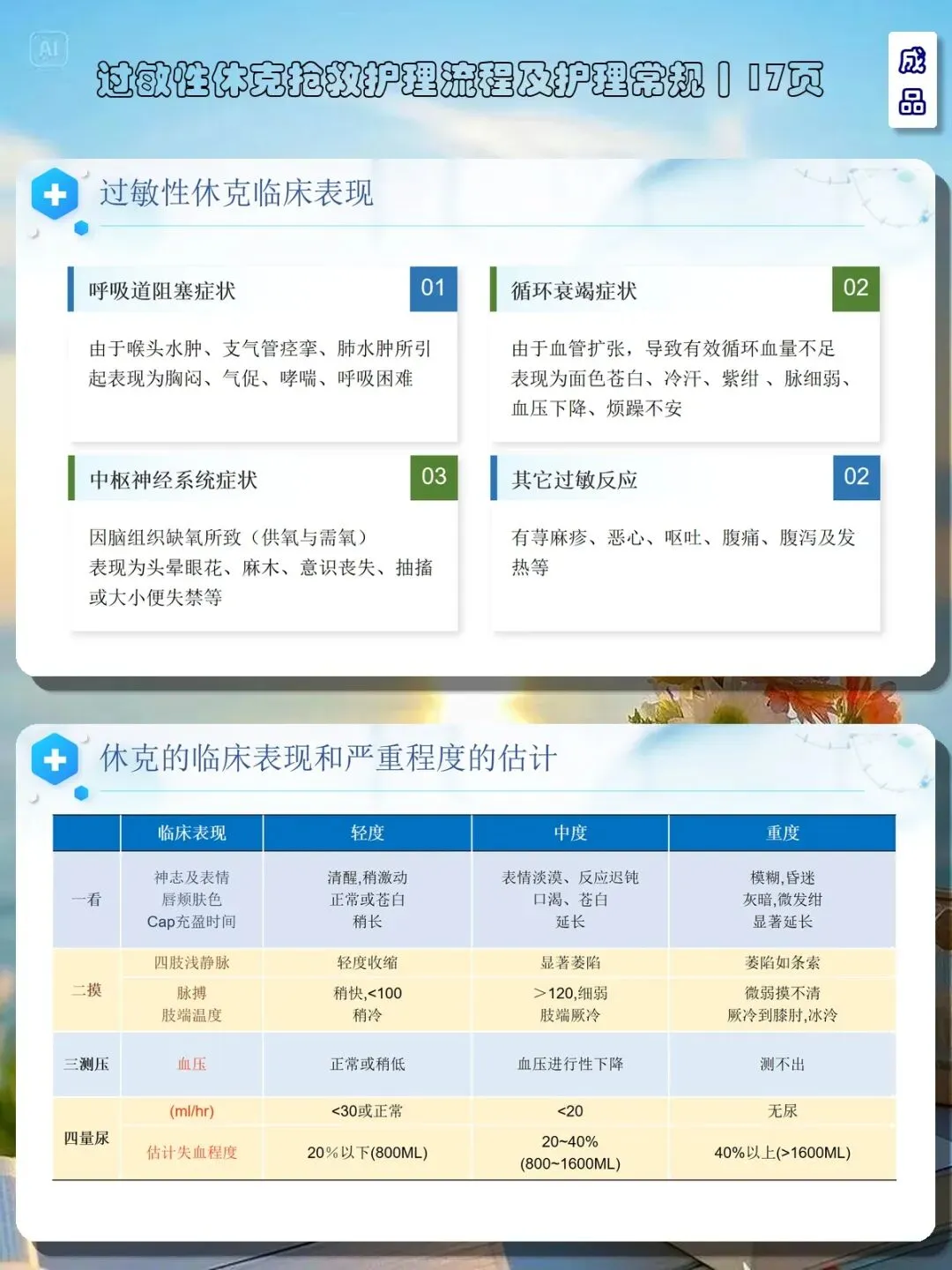 快速识别接触过敏原后,患者突然出现皮肤瘙痒、荨麻疹、面色苍白,伴随胸闷、气促、喉头水肿,同时血压快速下降、脉搏细弱、出冷汗、意识改变,即可判断为过敏性休克。