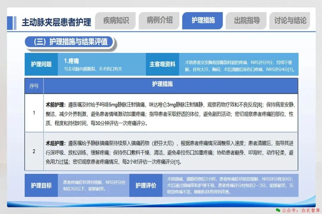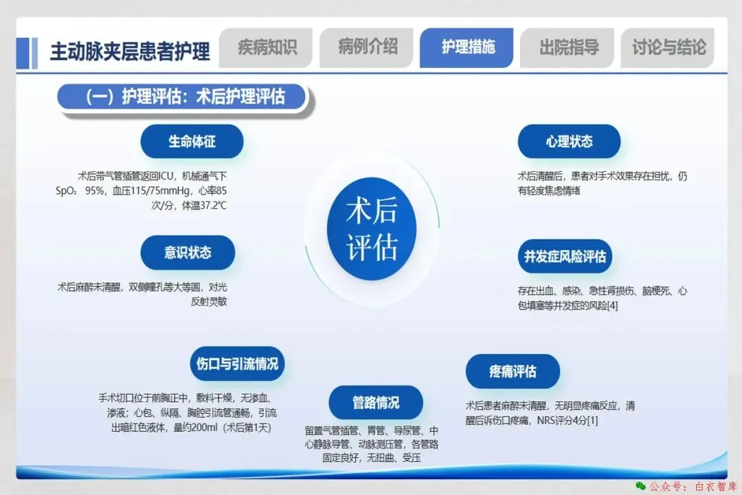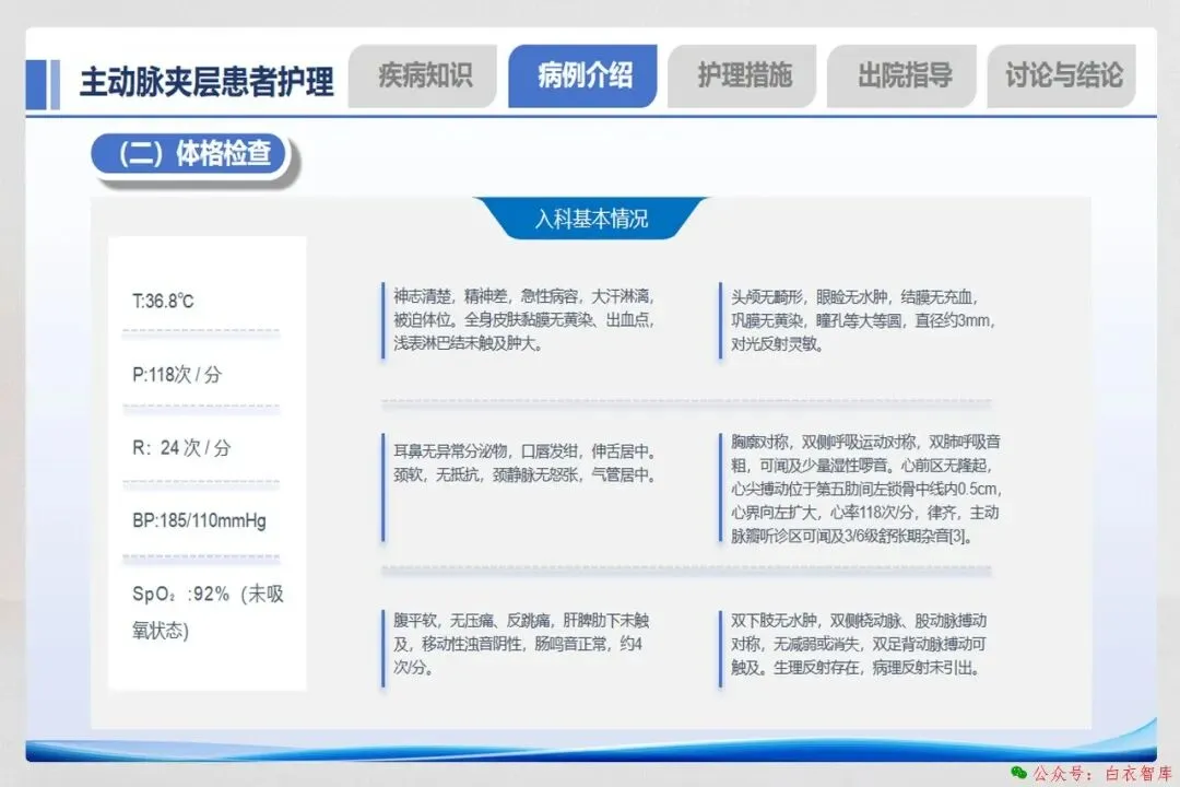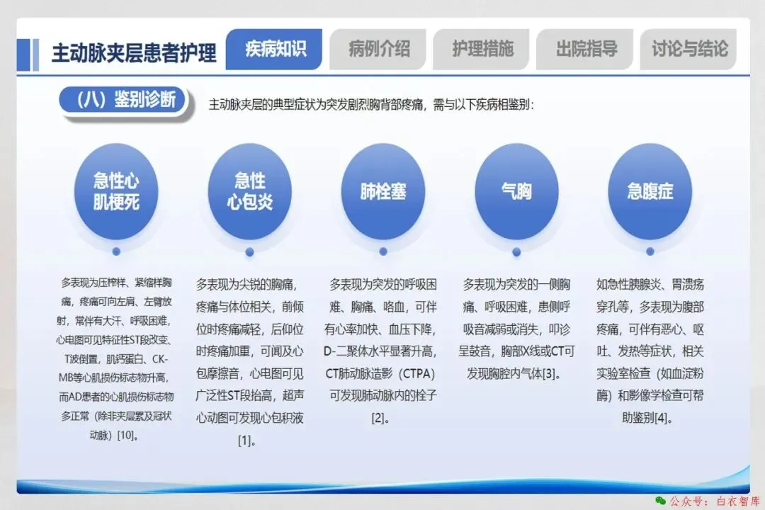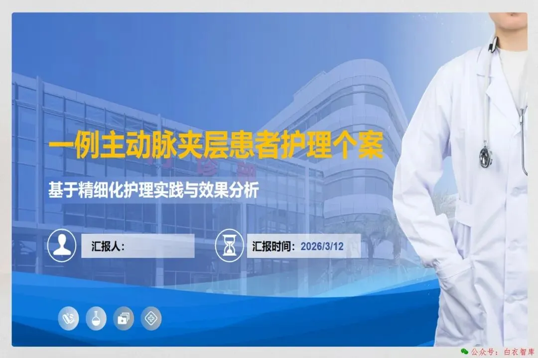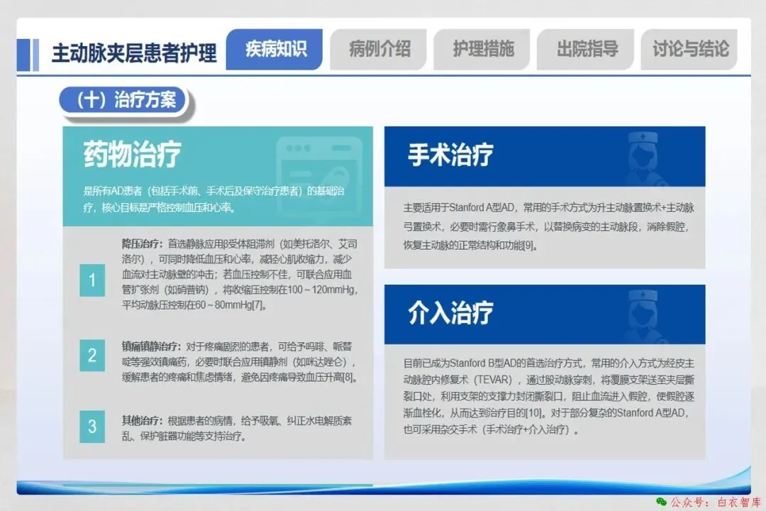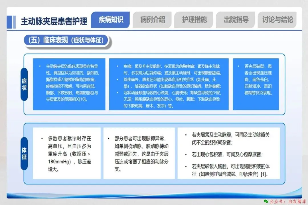 各位同仁,大家好!欢迎来到白衣智库!主动脉夹层作为心血管急危重症,具有起病急、进展快、病死率高的特点,精细化护理是改善患者预后、降低并发症的关键。