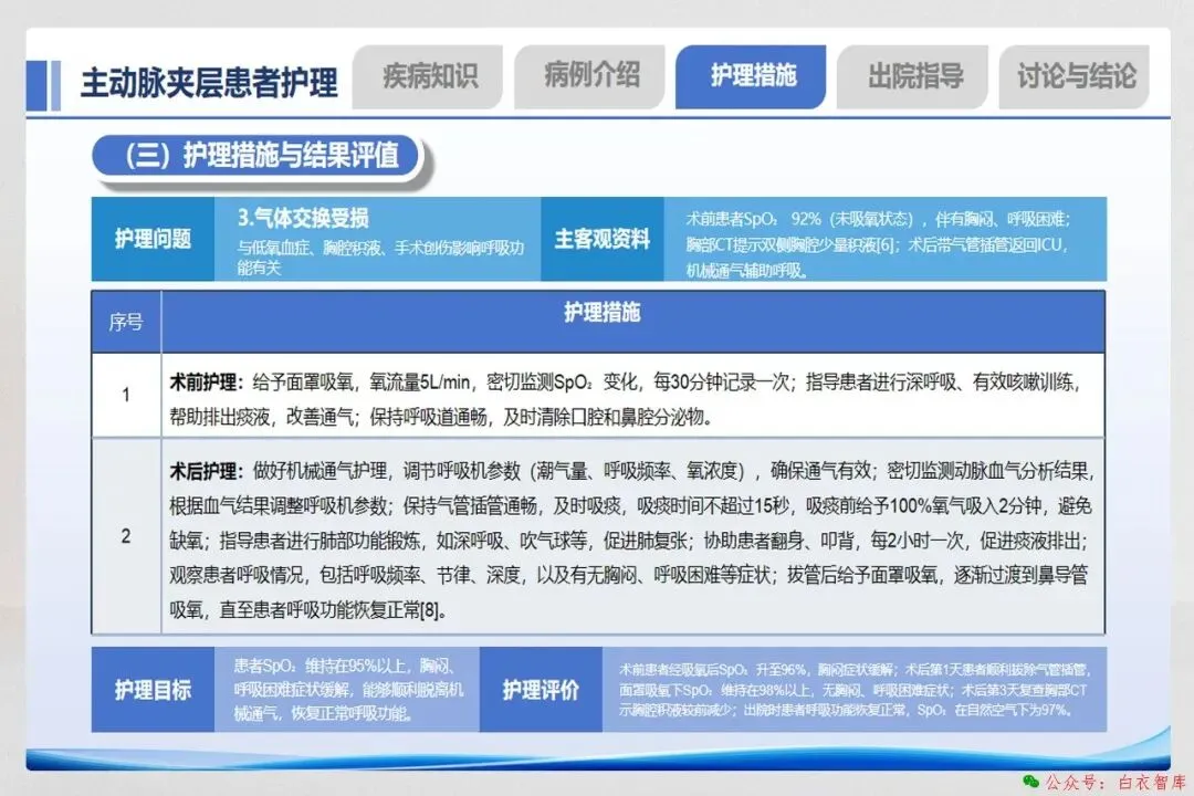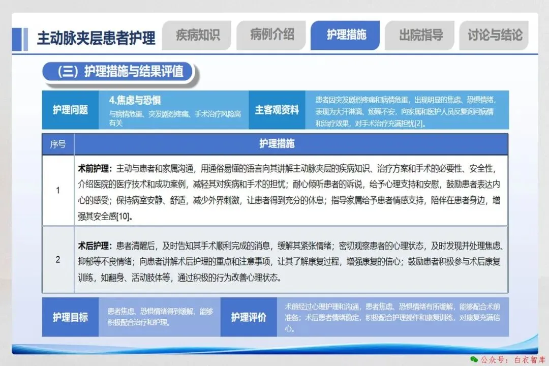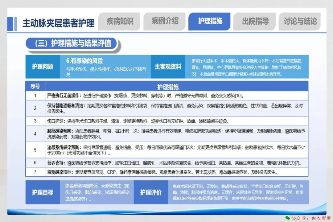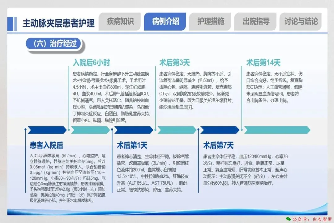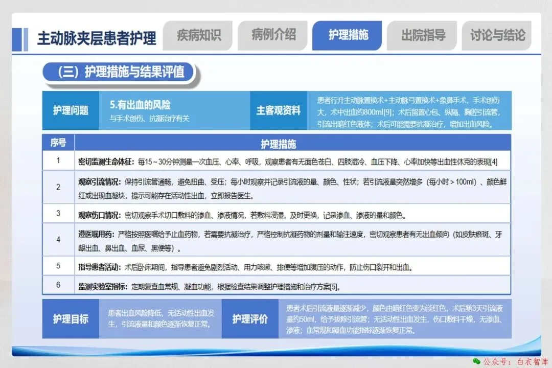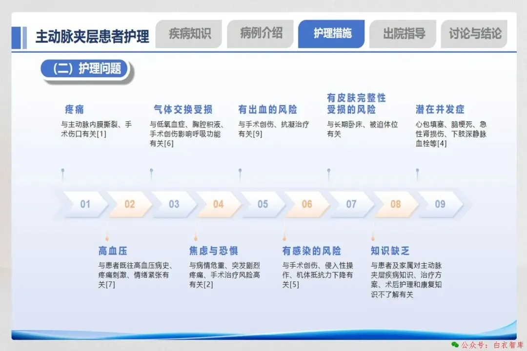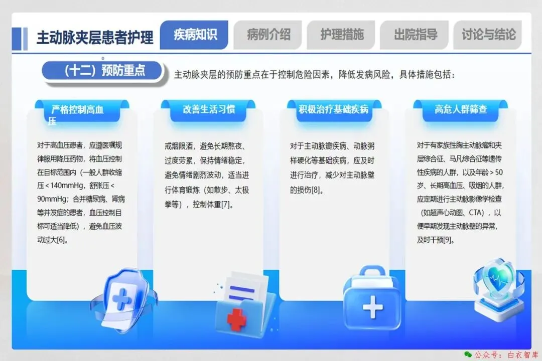 各位同仁,大家好!欢迎来到白衣智库!主动脉夹层作为心血管急危重症,具有起病急、进展快、病死率高的特点,精细化护理是改善患者预后、降低并发症的关键。