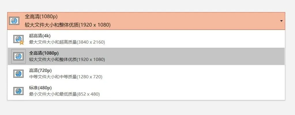 分两种情况,第一种情况是用PPT完成,转成MP4的方式,这也是最常用,最便捷的多媒体制作方式,用这种方法完成的MP4,默认编码方法满足H264的要求,因此无需其它操作,直接用PPT用Office 2013以上版本生成720P或1080P格式的MP4即可,如果您的PPT版本很高,切记,不要使用4K模式,4K模式一般的电脑播放不流畅,而且文件大小也会超过要求。