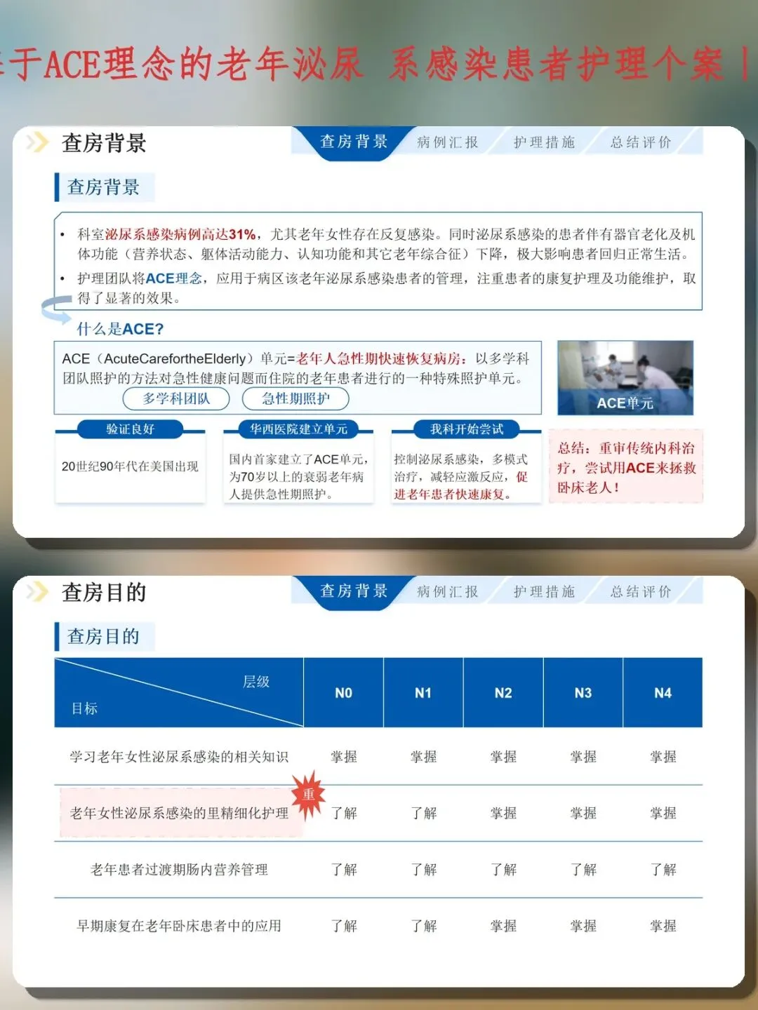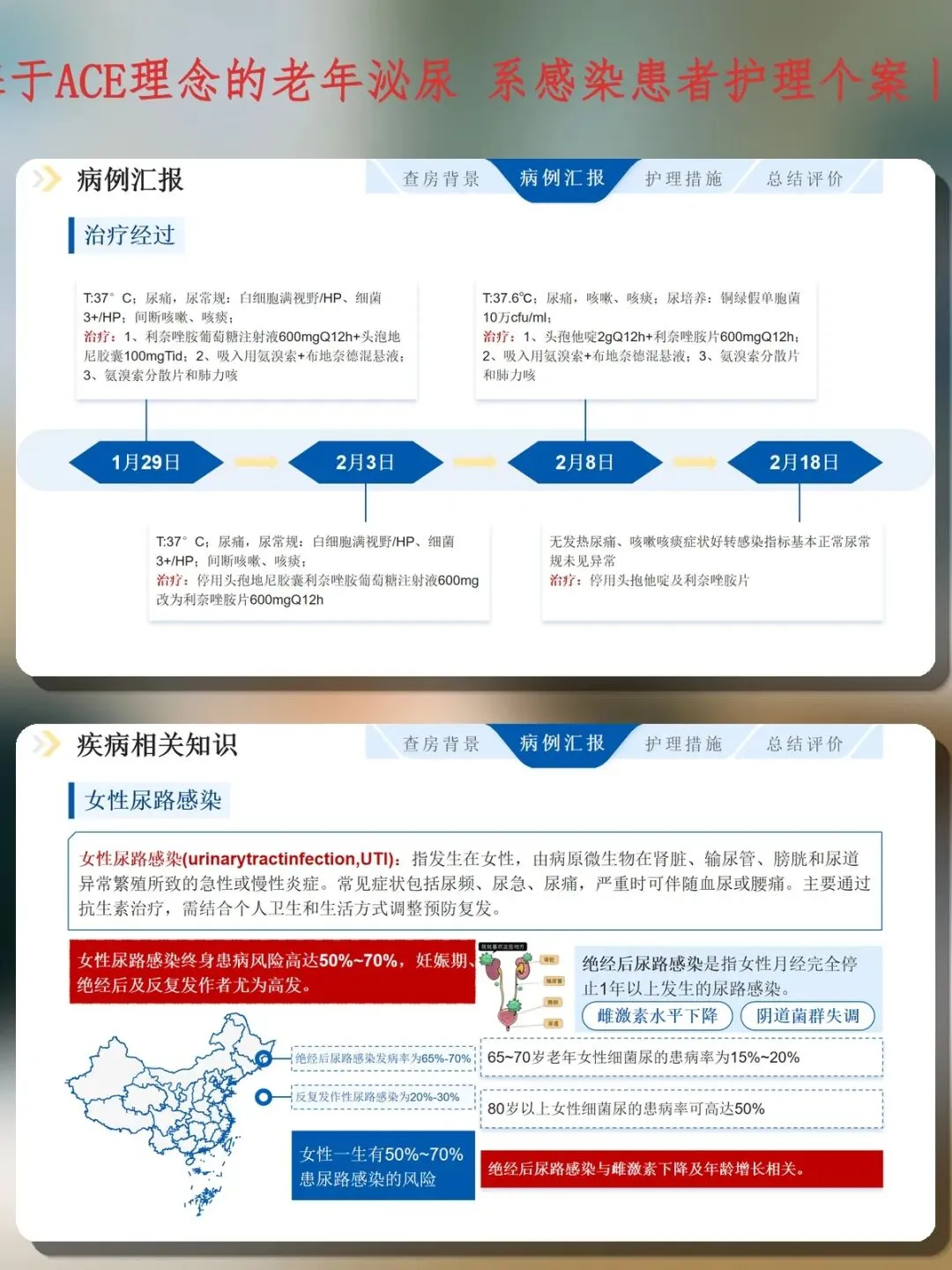 老年患者泌尿系感染是临床护理的棘手难题,科室感染率高达31%,尤其老年女性反复感染、多重并发症叠加,传统内科治疗模式效果有限。这份护理个案引入ACE(Acute Care for the Elderly)理念——老年人急性期快速恢复病房模式,通过多学科团队协作、老年综合评估、早期康复介入,为复杂病例提供系统化解决方案。