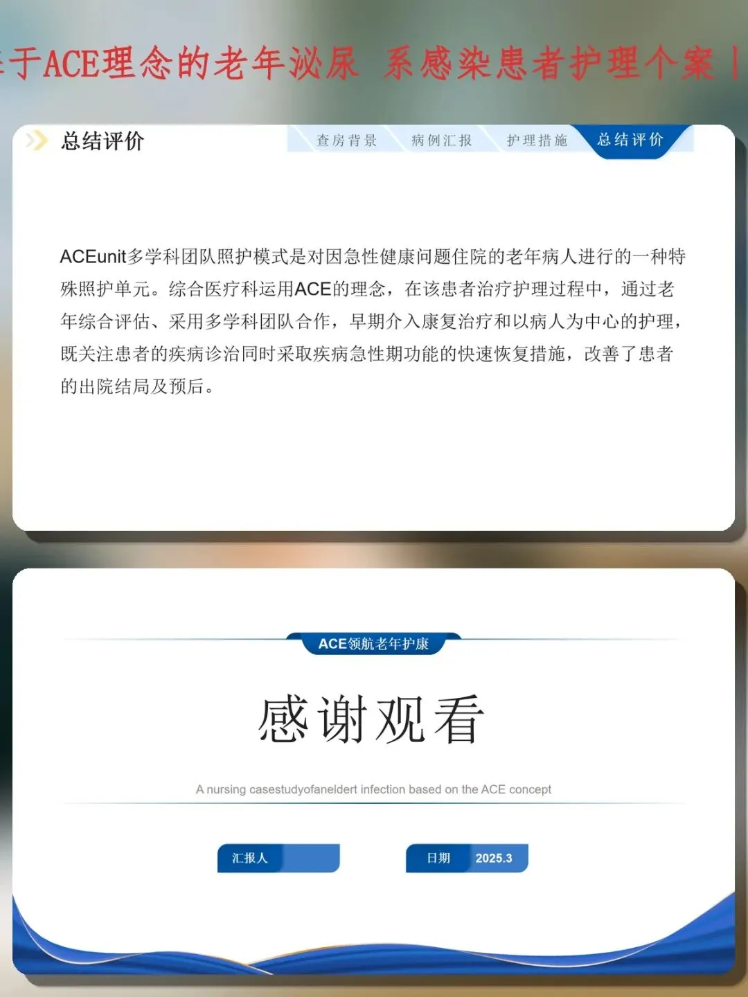 ACE单元的价值在于打破"重治疗、轻功能"的传统模式,将老年综合评估、MDT协作、早期康复、以患者为中心整合为标准化流程。护理团队在此模式中承担评估者、协调者、实施者、教育者多重角色,通过护理查房、健康宣教、康复指导,实现"急性期诊治"与"功能快速恢复"的双重目标。对于反复感染、多重慢病、衰弱卧床的老年患者,ACE理念提供了从"拯救生命"到"维护生活质量"的护理新范式。