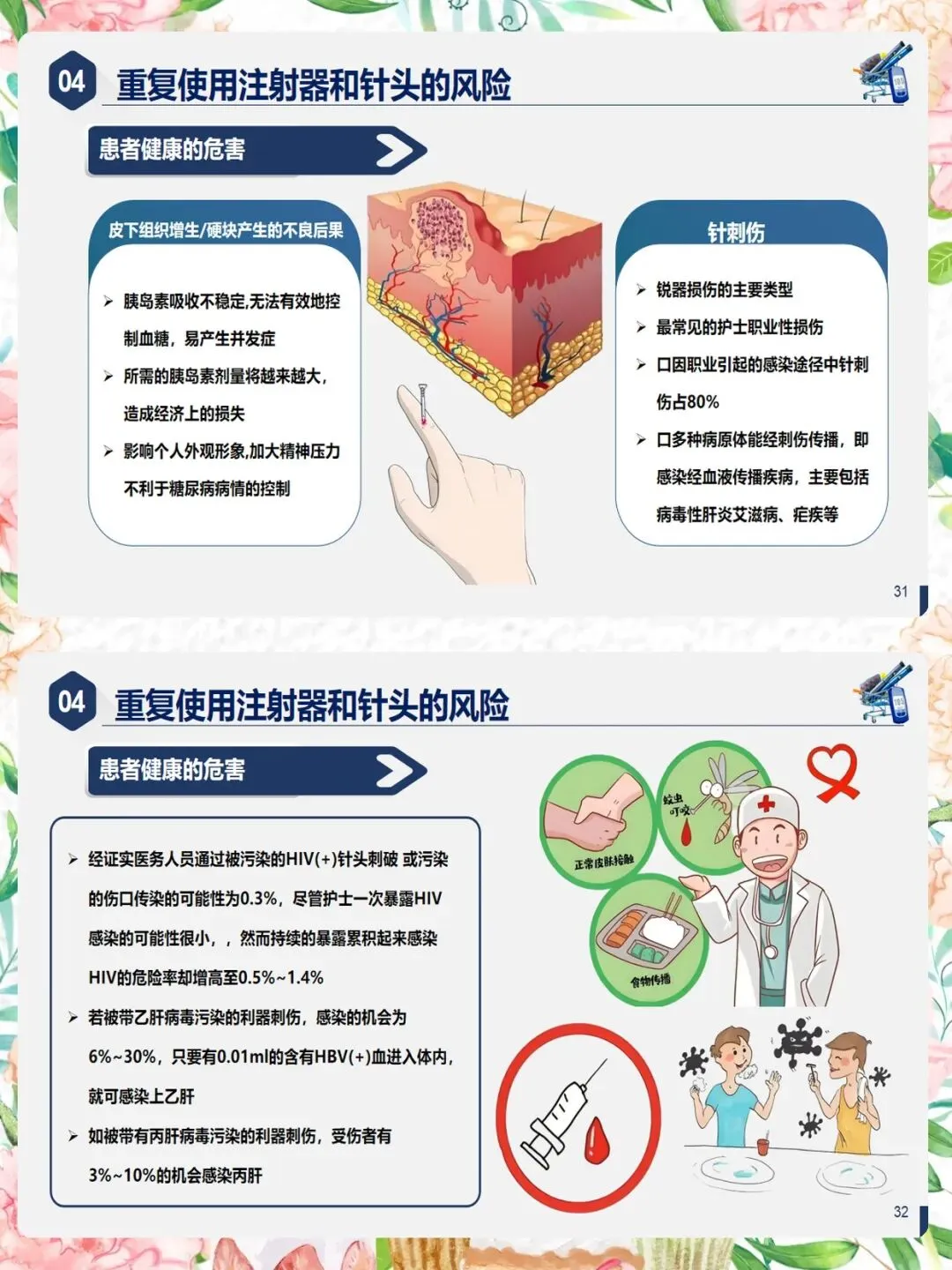 最后,医护人员也要保护好自己。一次性针头使用后应立即处理,避免针刺伤,防范乙肝、丙肝、HIV等血源性传染病风险。