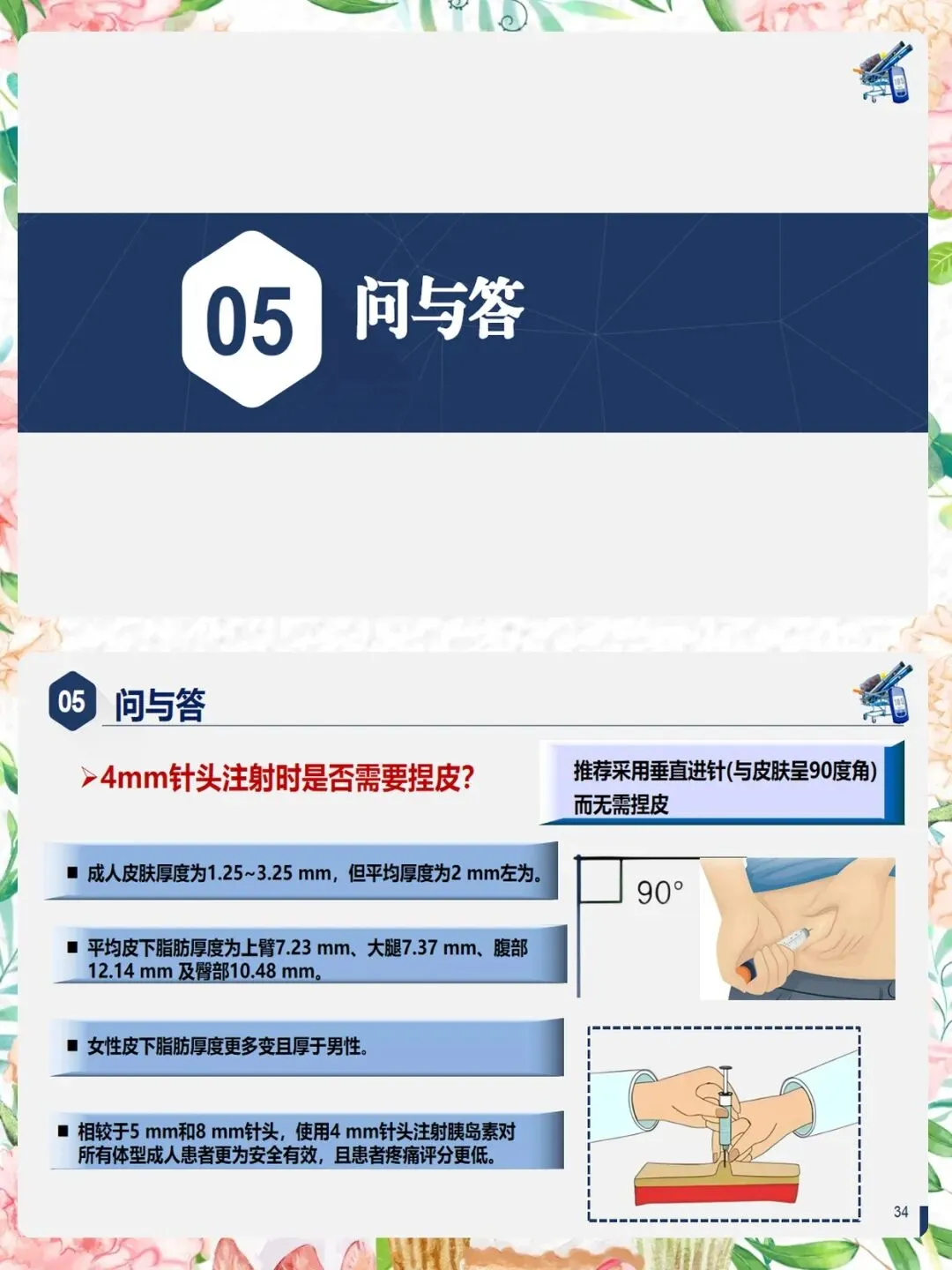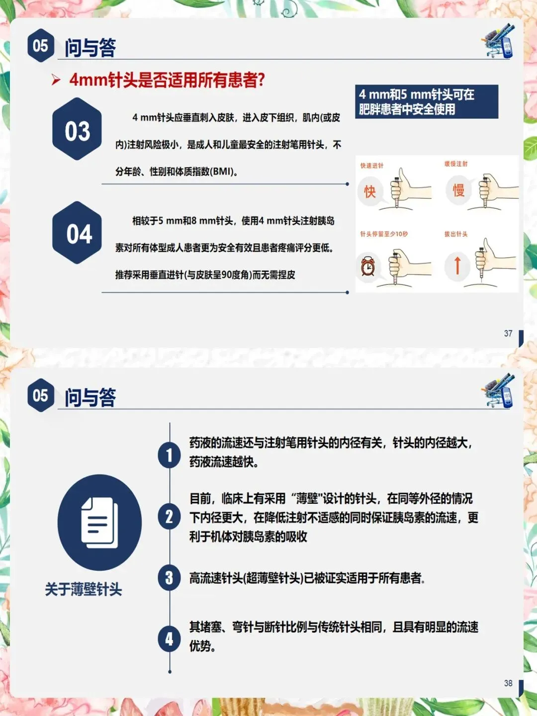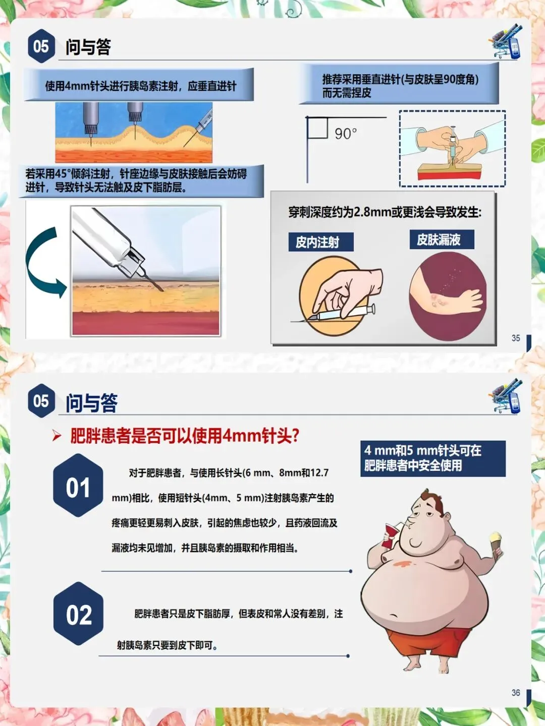 第四,4mm针头是目前最安全的选择。大多数成人无需捏皮,垂直进针即可。肥胖患者同样适用。