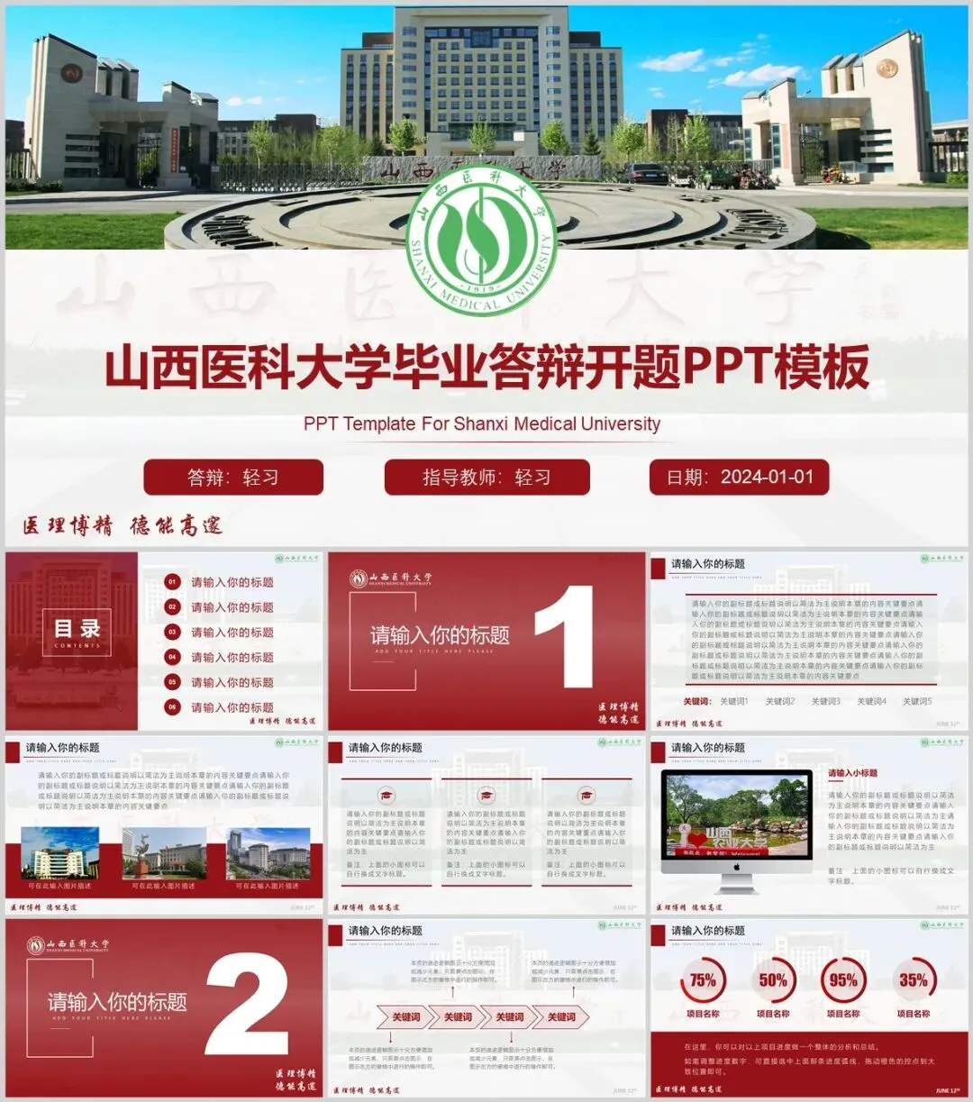 山西医科大学专属PPT模板来了,喜欢的同学不要错过啦!