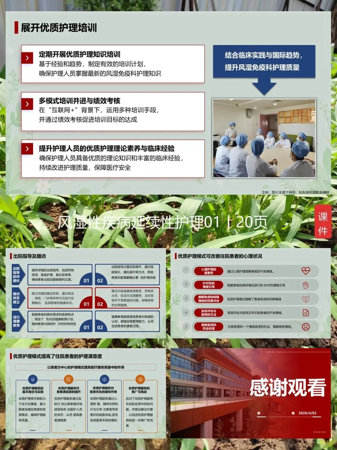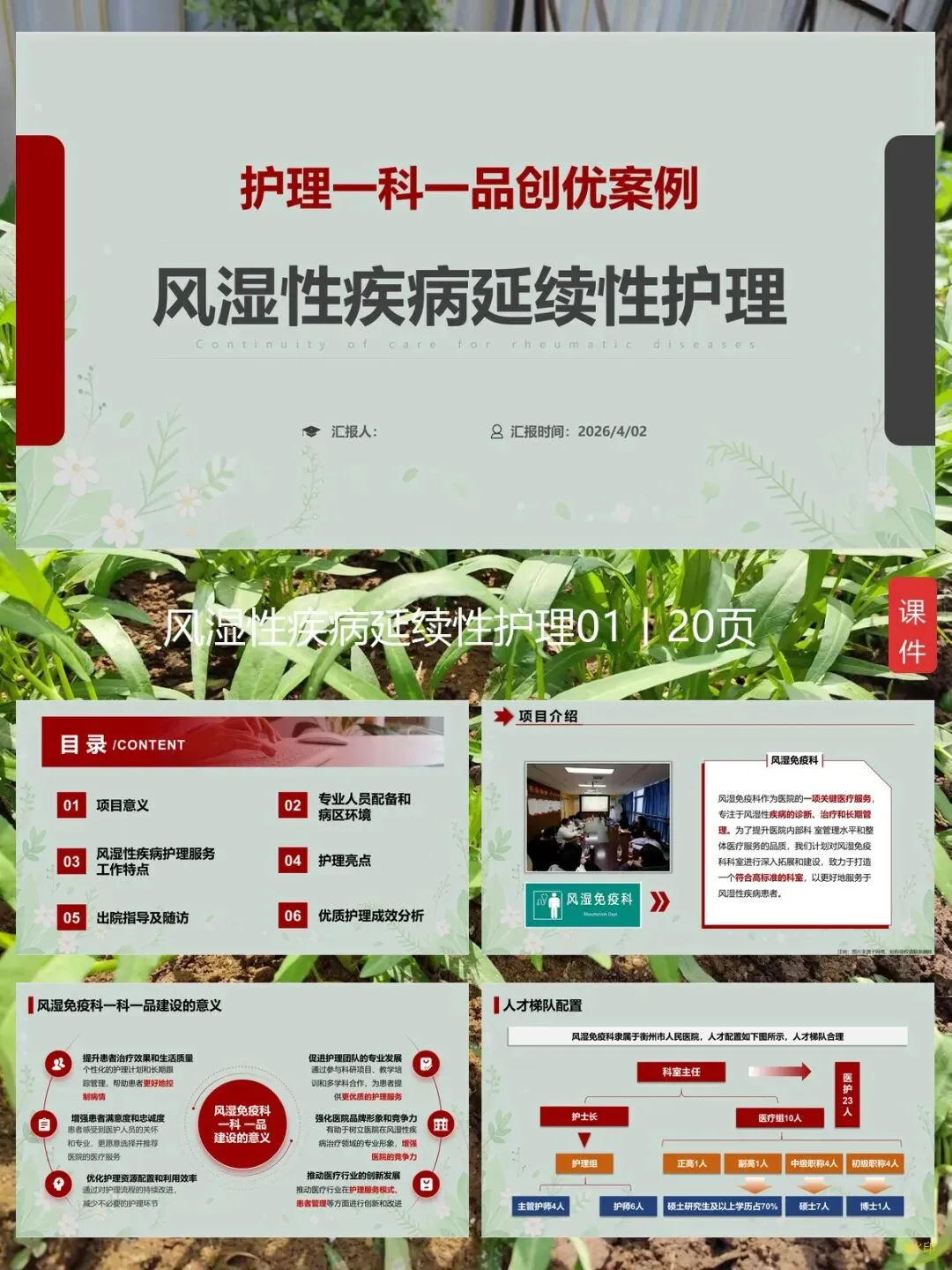 大家好,今天我汇报的是风湿性疾病延续性护理,也是我们科的一科一品创优案例。