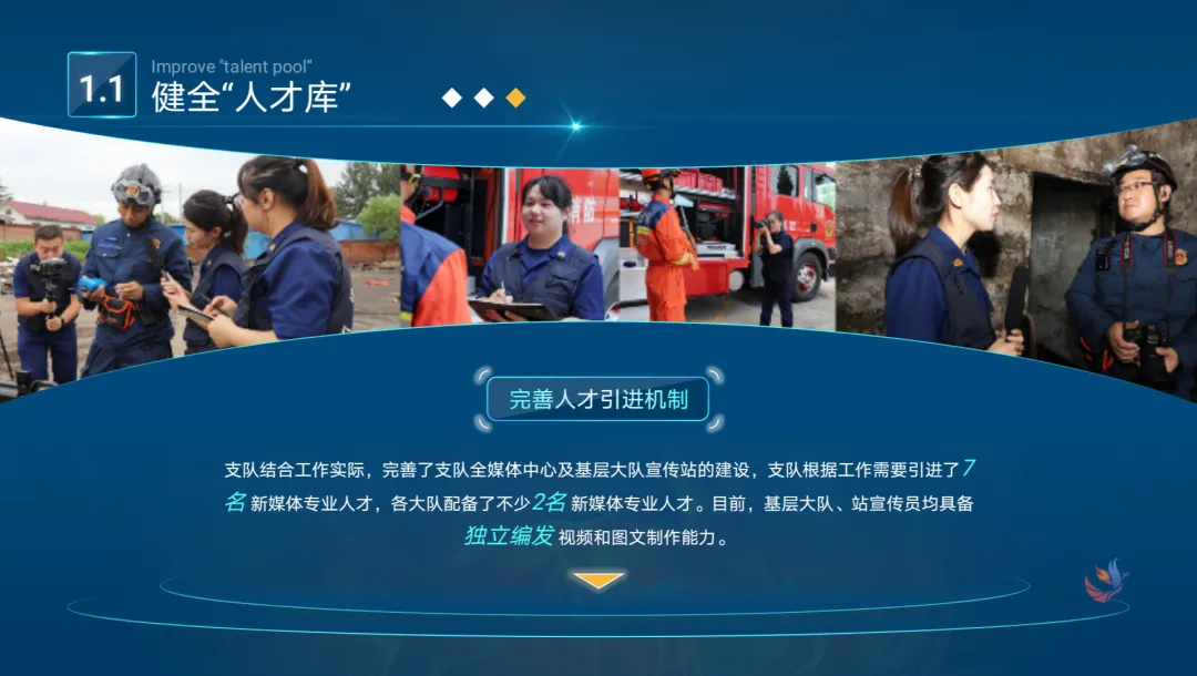 支队结合工作实际,完善了支队全媒体中心及基层大队宣传站的建设,支队根据工作需要引进了7名新媒体专业人才,各大队配备了不少2名新媒体专业人才,目前,基层大队、站宣传员均具备独立编发视频和图文制作能力。
