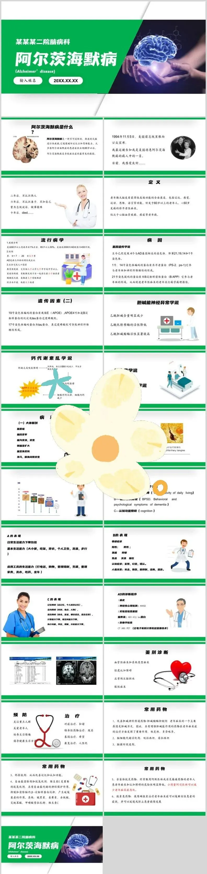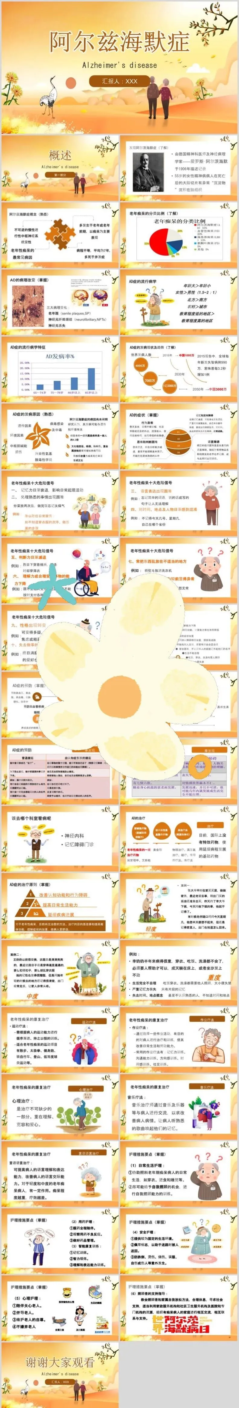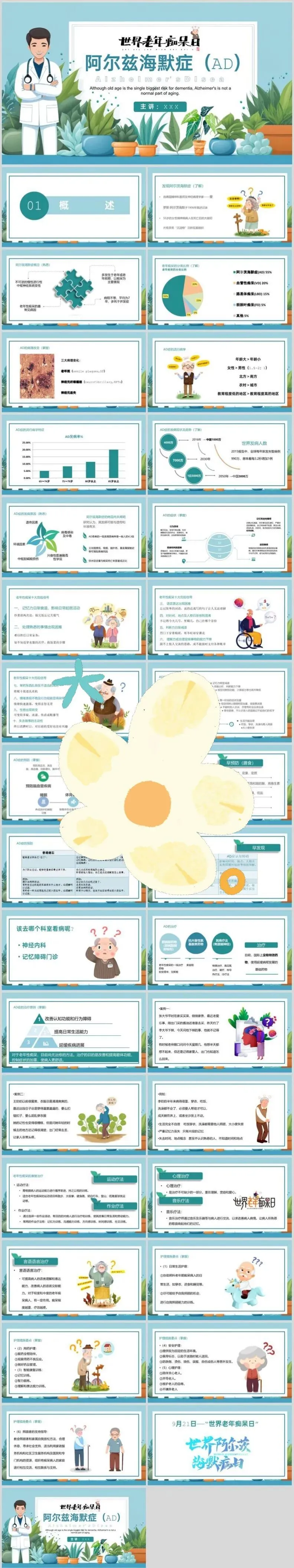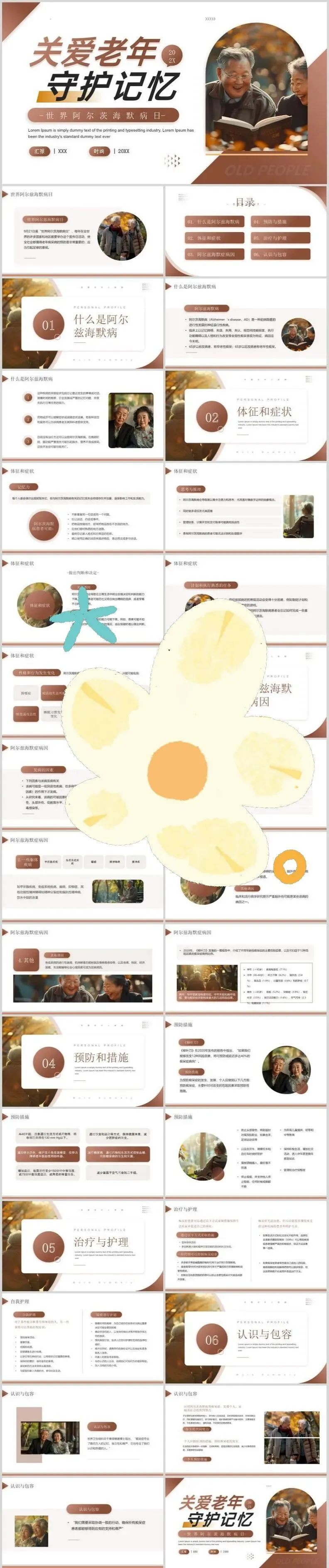 【PPT模板】世界阿尔茨海默病日PPT模板关注老年痴呆症预防阿尔茨海默症治疗