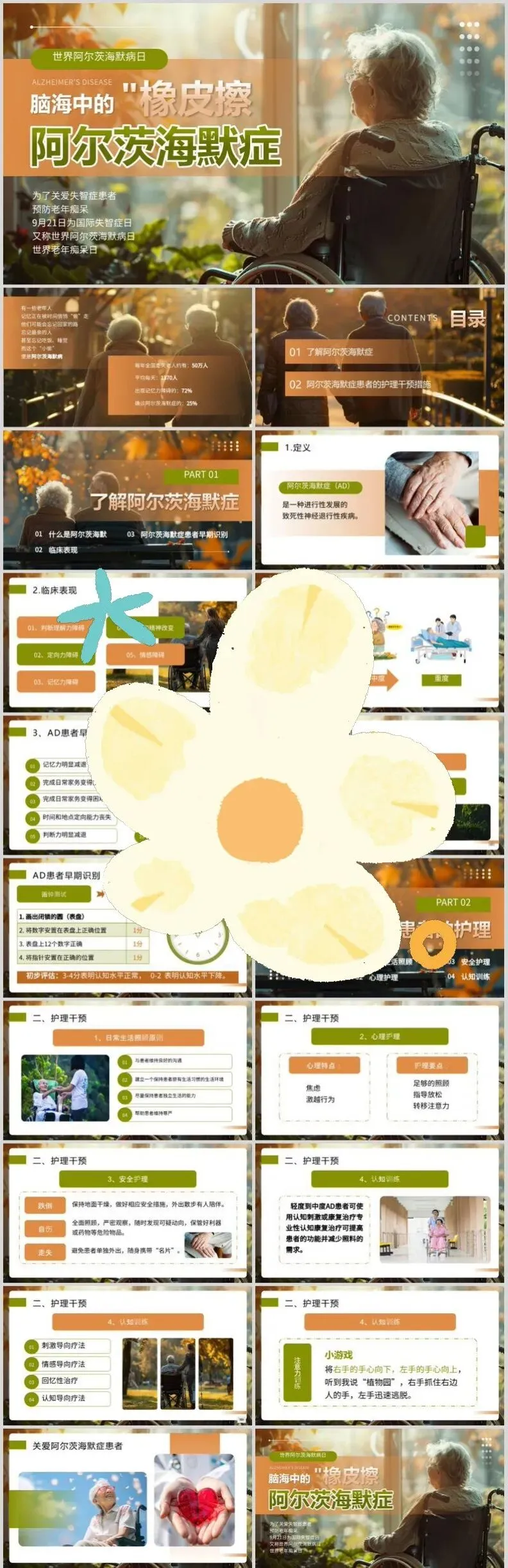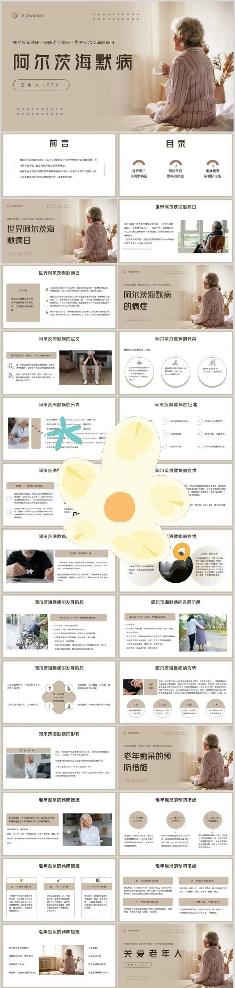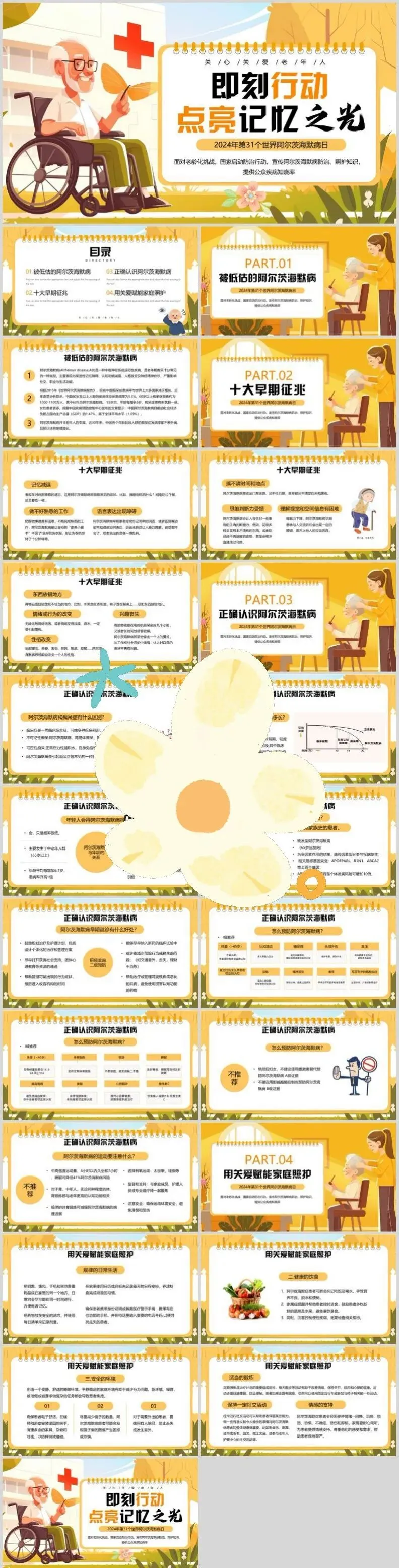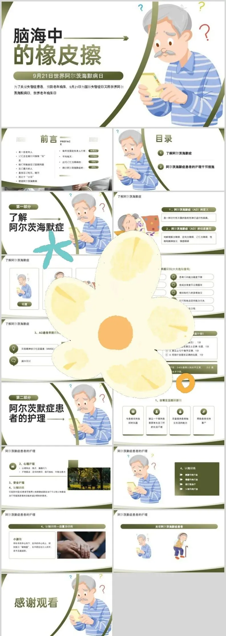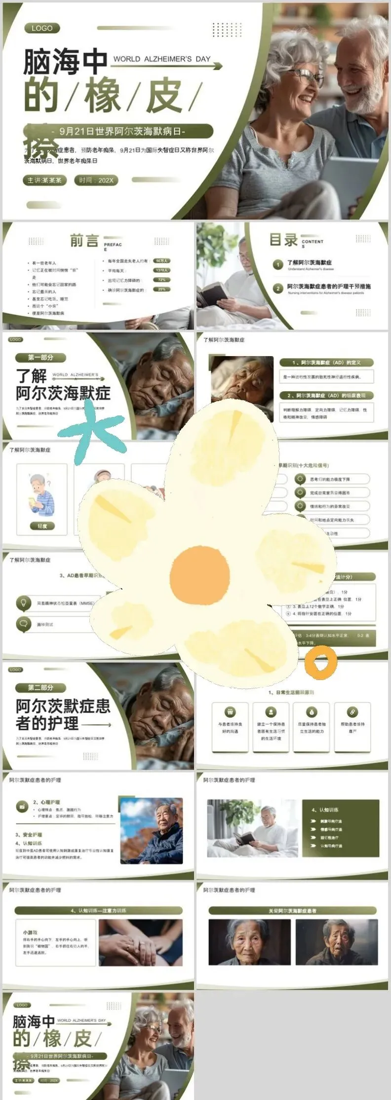【PPT模板】世界阿尔茨海默病日PPT模板关注老年痴呆症
