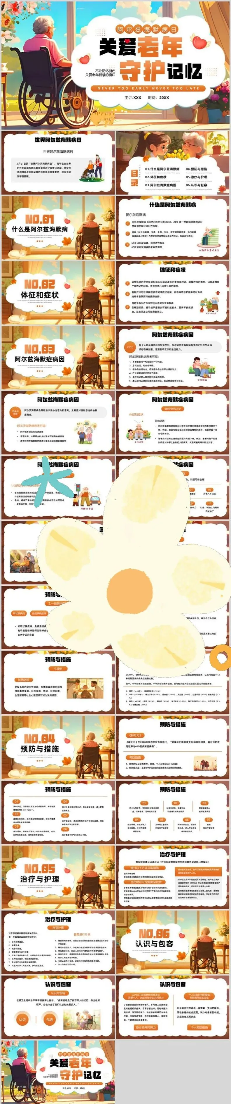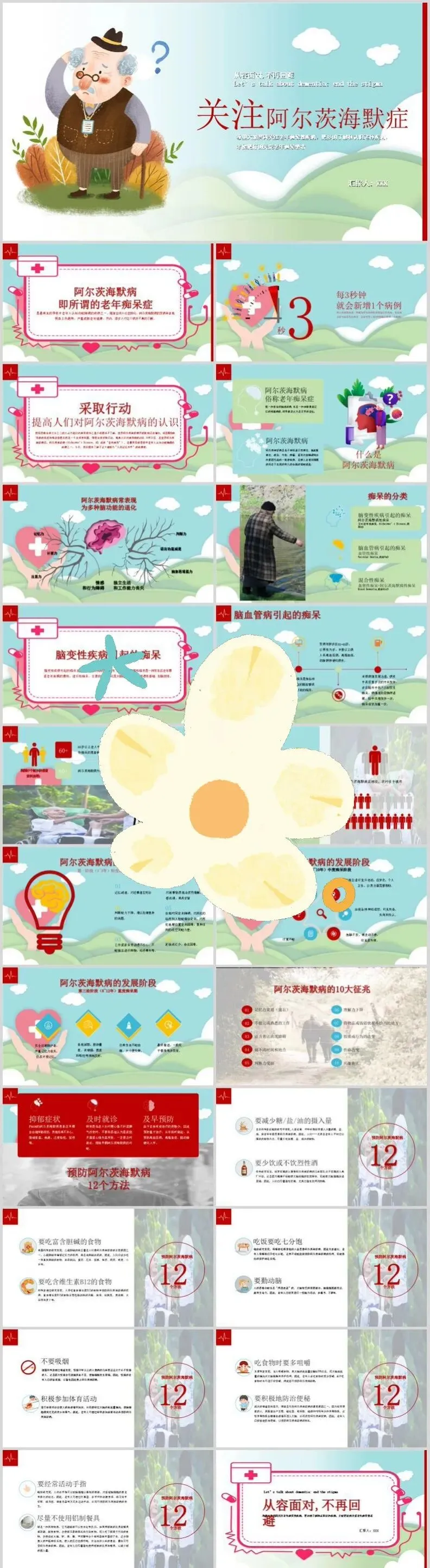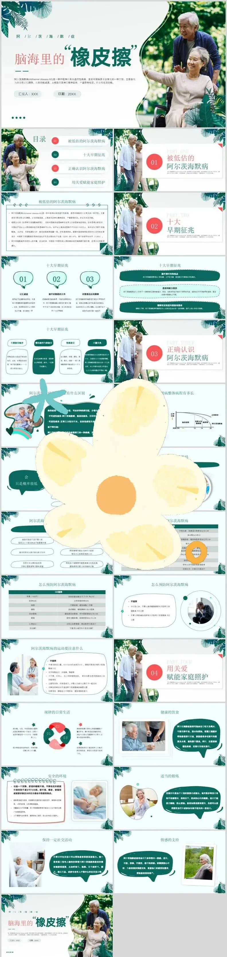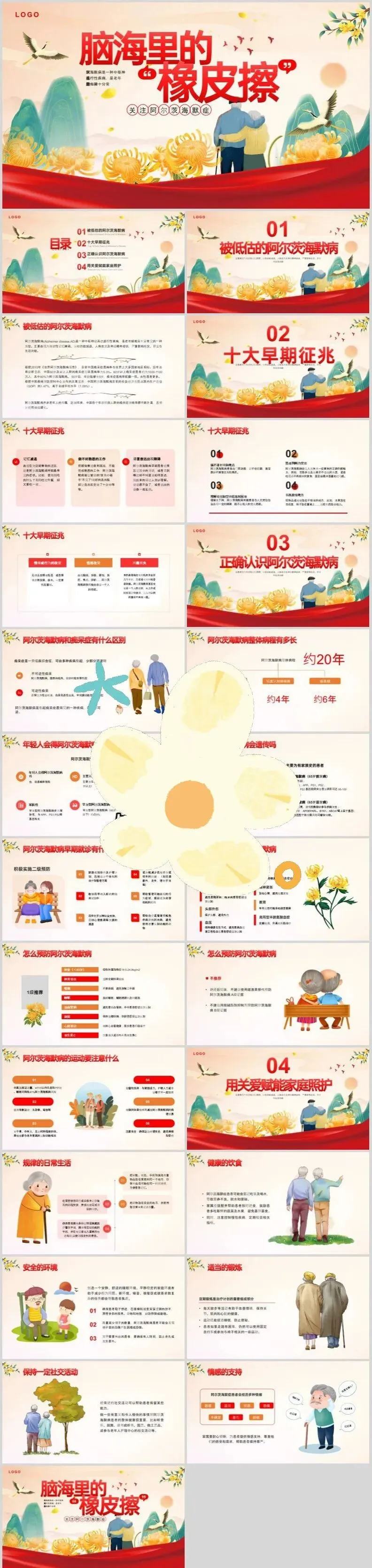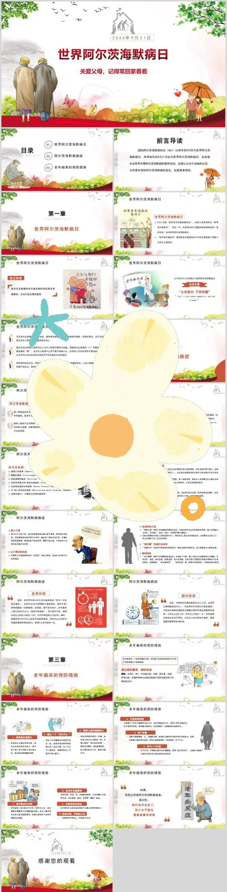【PPT模板】世界阿尔茨海默病日PPT模板关注老年痴呆症