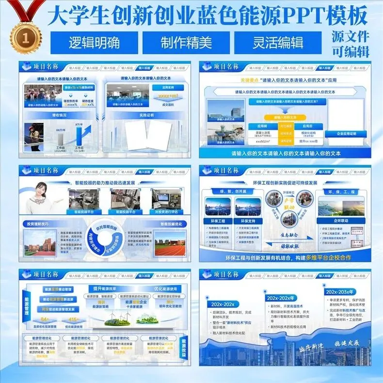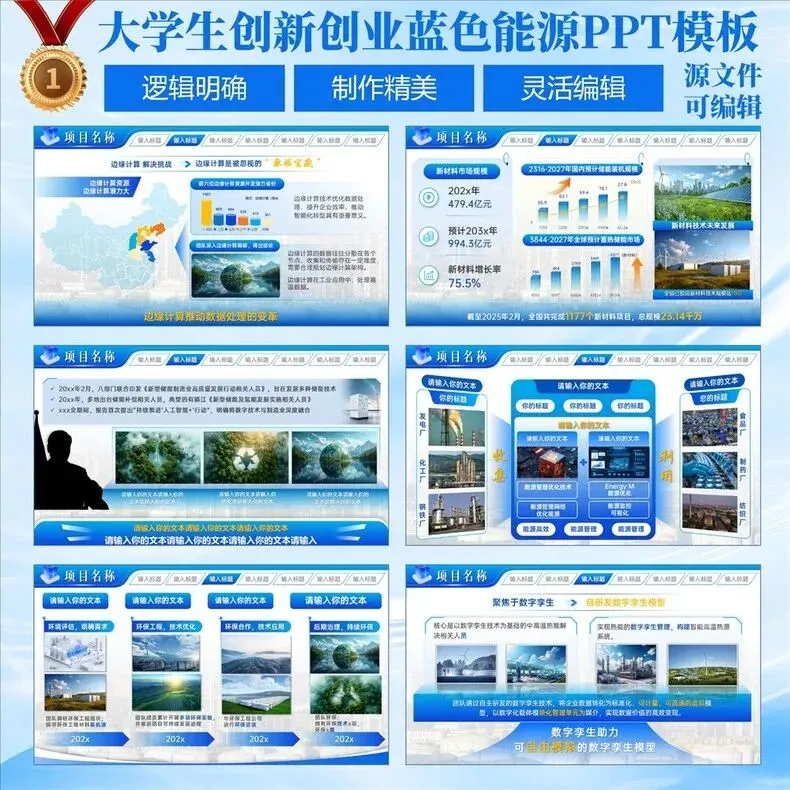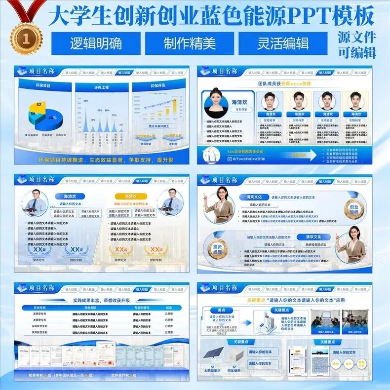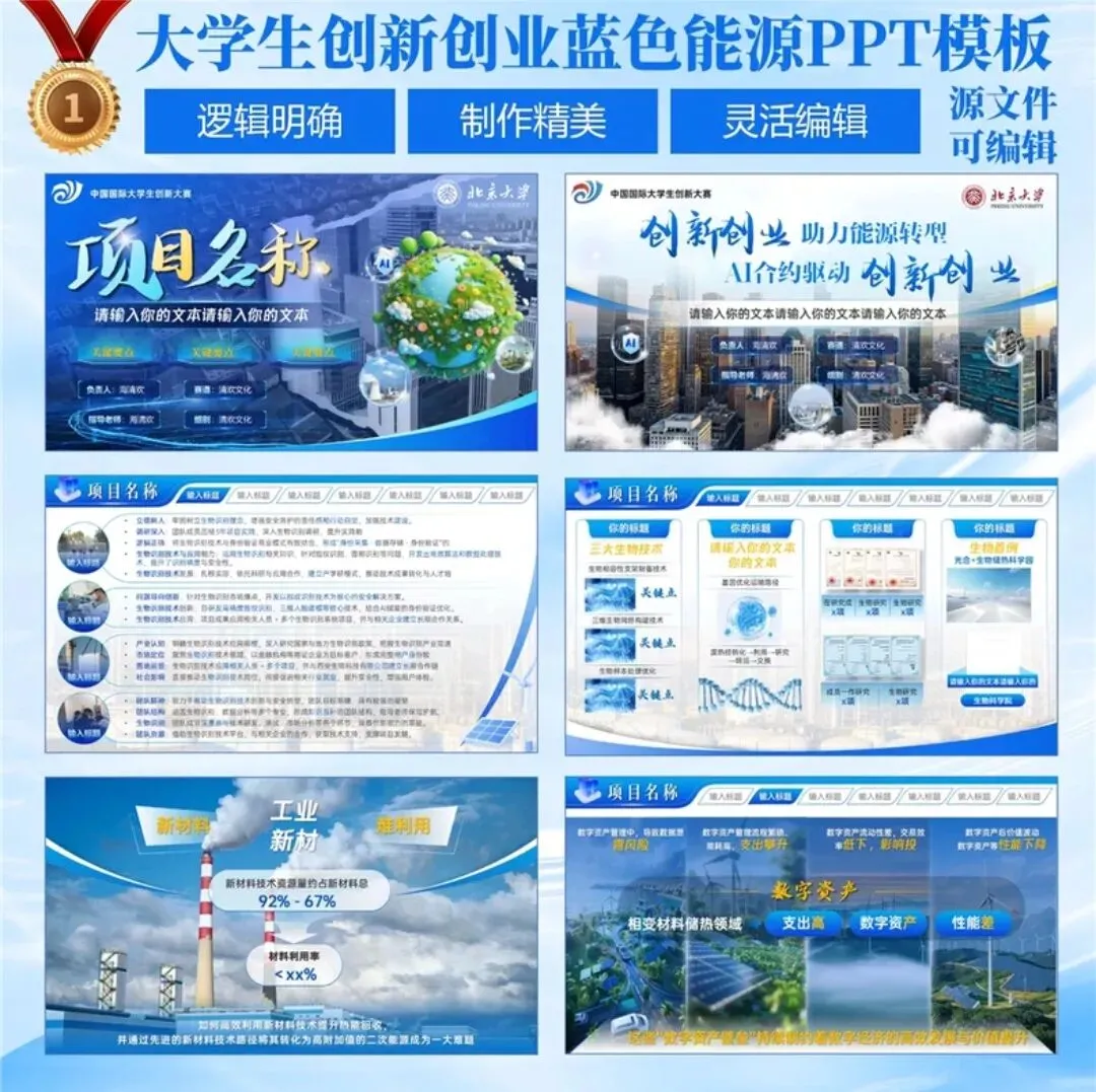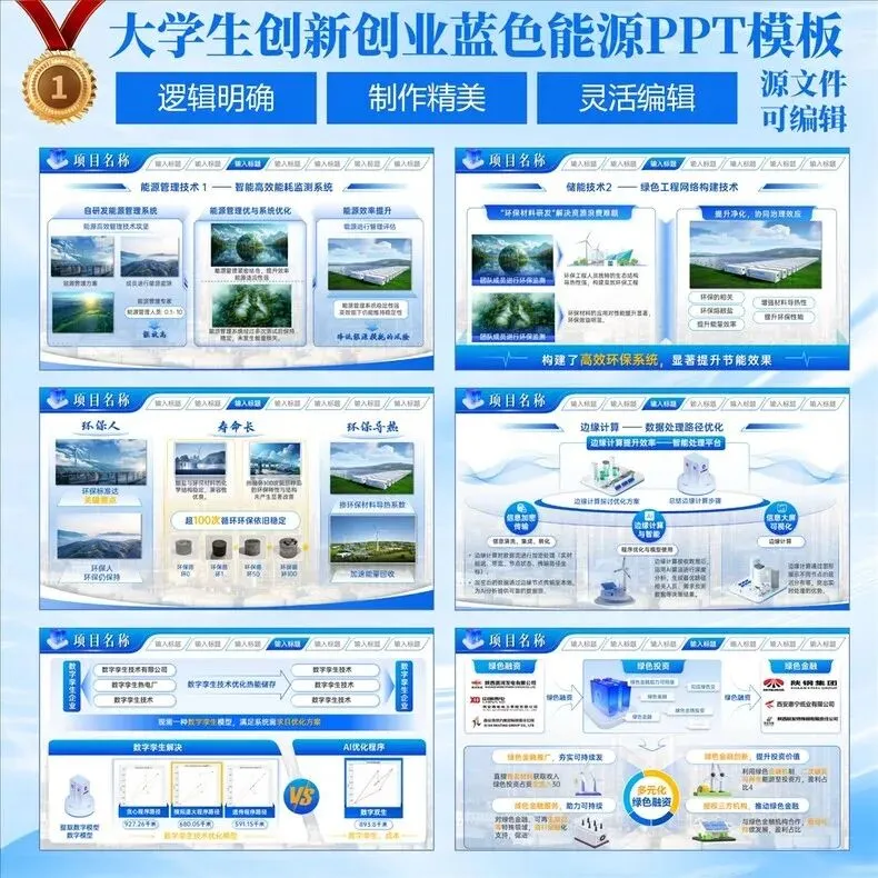 【PPT模板】蓝色科技感PPT模板创赛ppt模板绿色能源创新创业大赛PPT模板31页