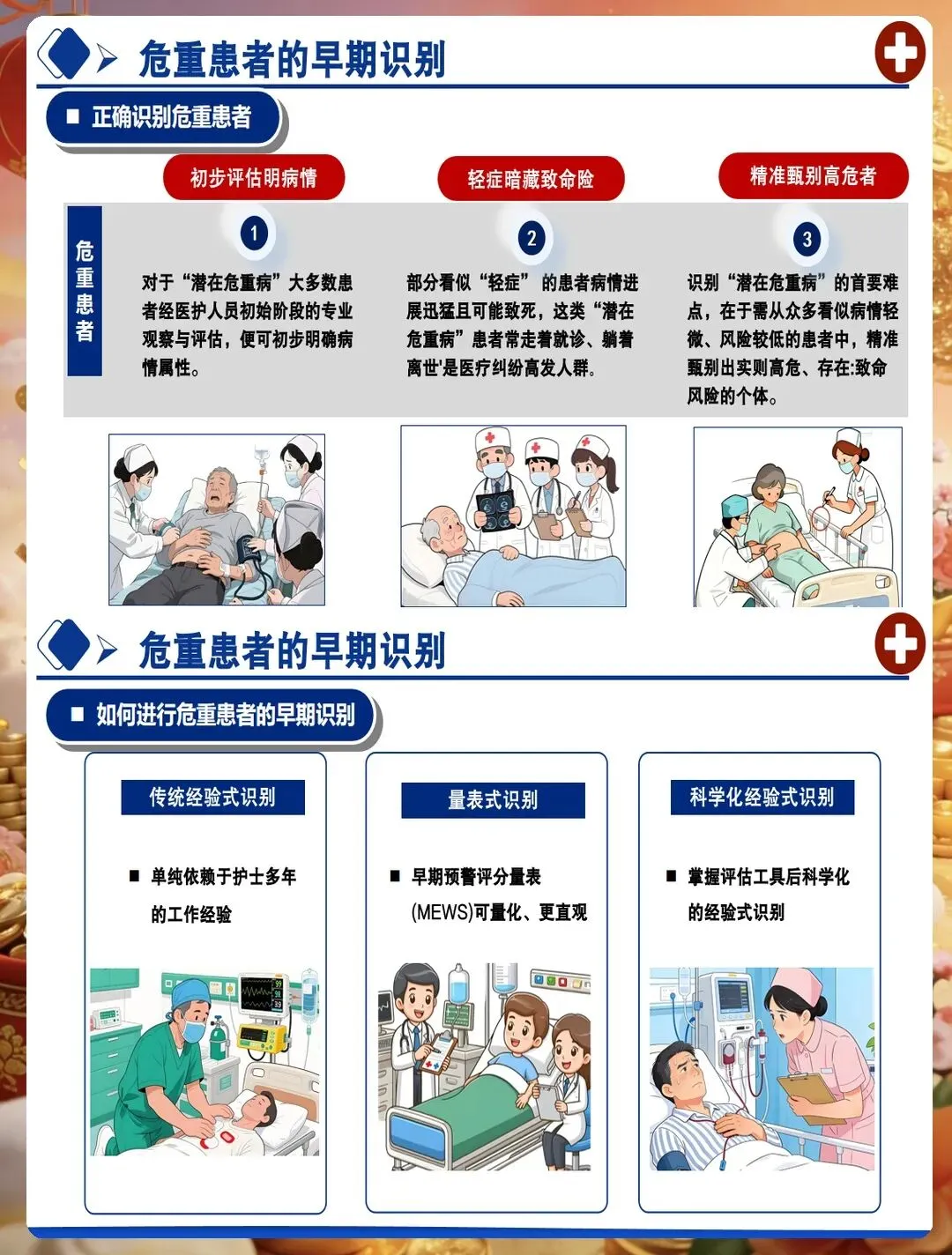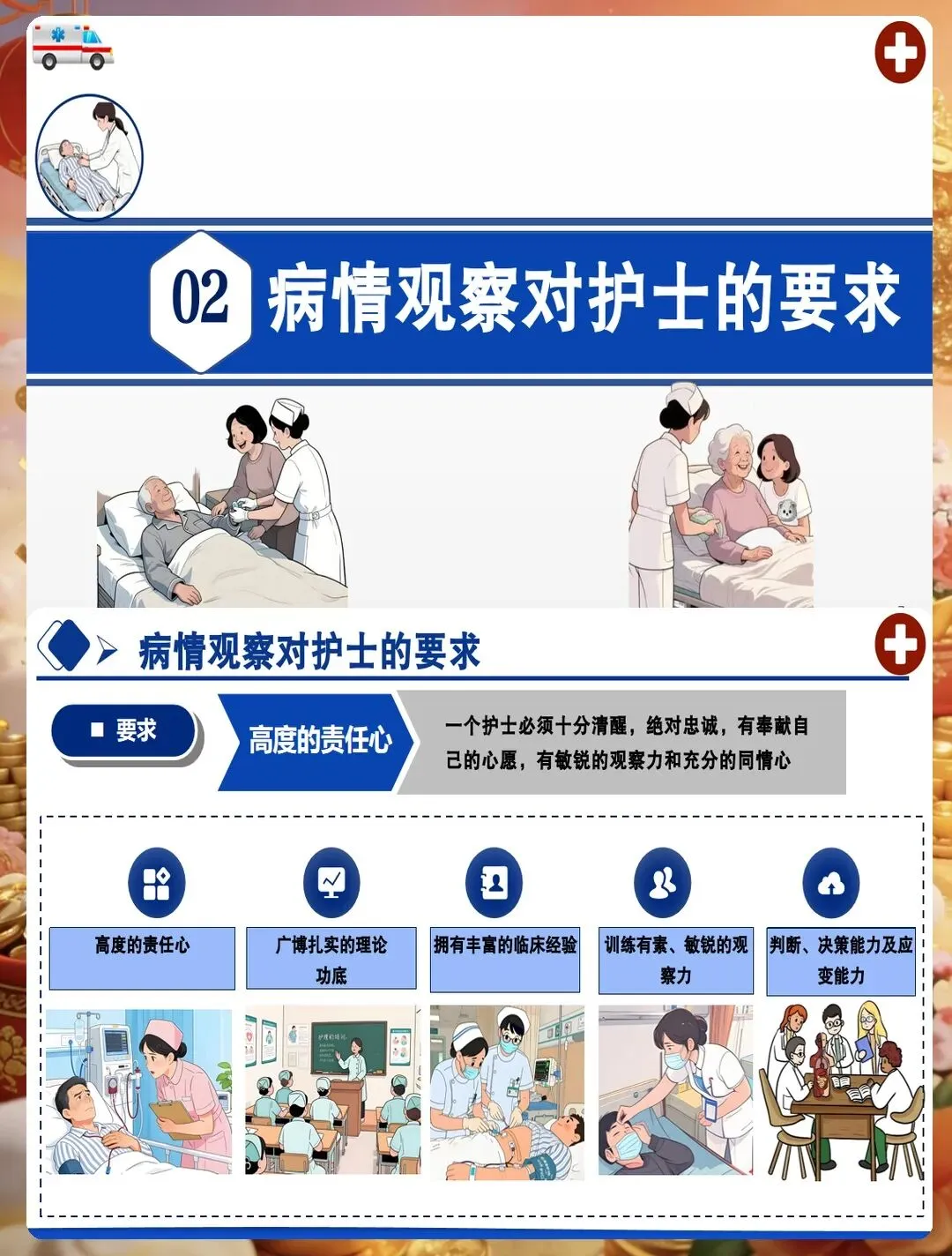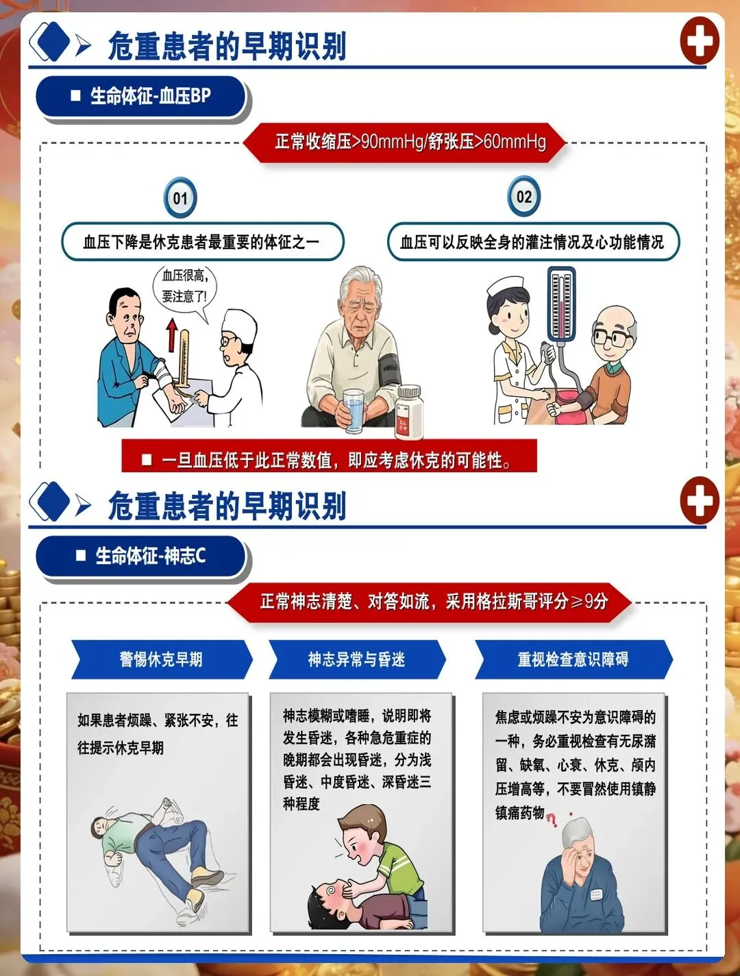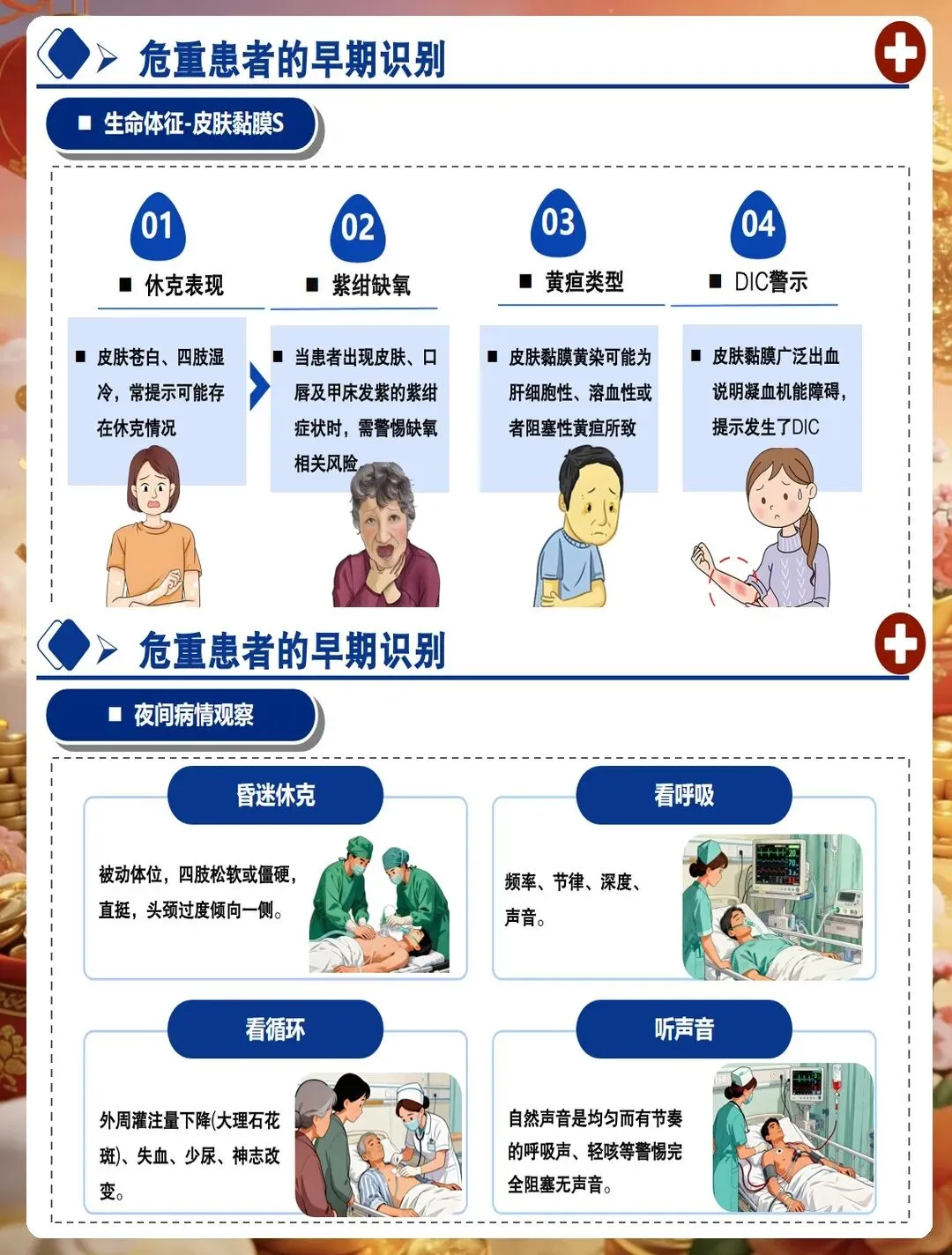 病情观察不是简单的看看而已,而是要有目的、有重点地去发现那些容易被忽略的细节。很多危重患者的病情变化都有前兆,只是这些前兆往往不太显眼,需要护士用心去捕捉。意识状态是首先要关注的,患者是清醒还是嗜睡、昏睡、昏迷,这种变化很多时候是渐进的,如果每次巡视都能简单对话几句,就能及时发现意识有没有变化。